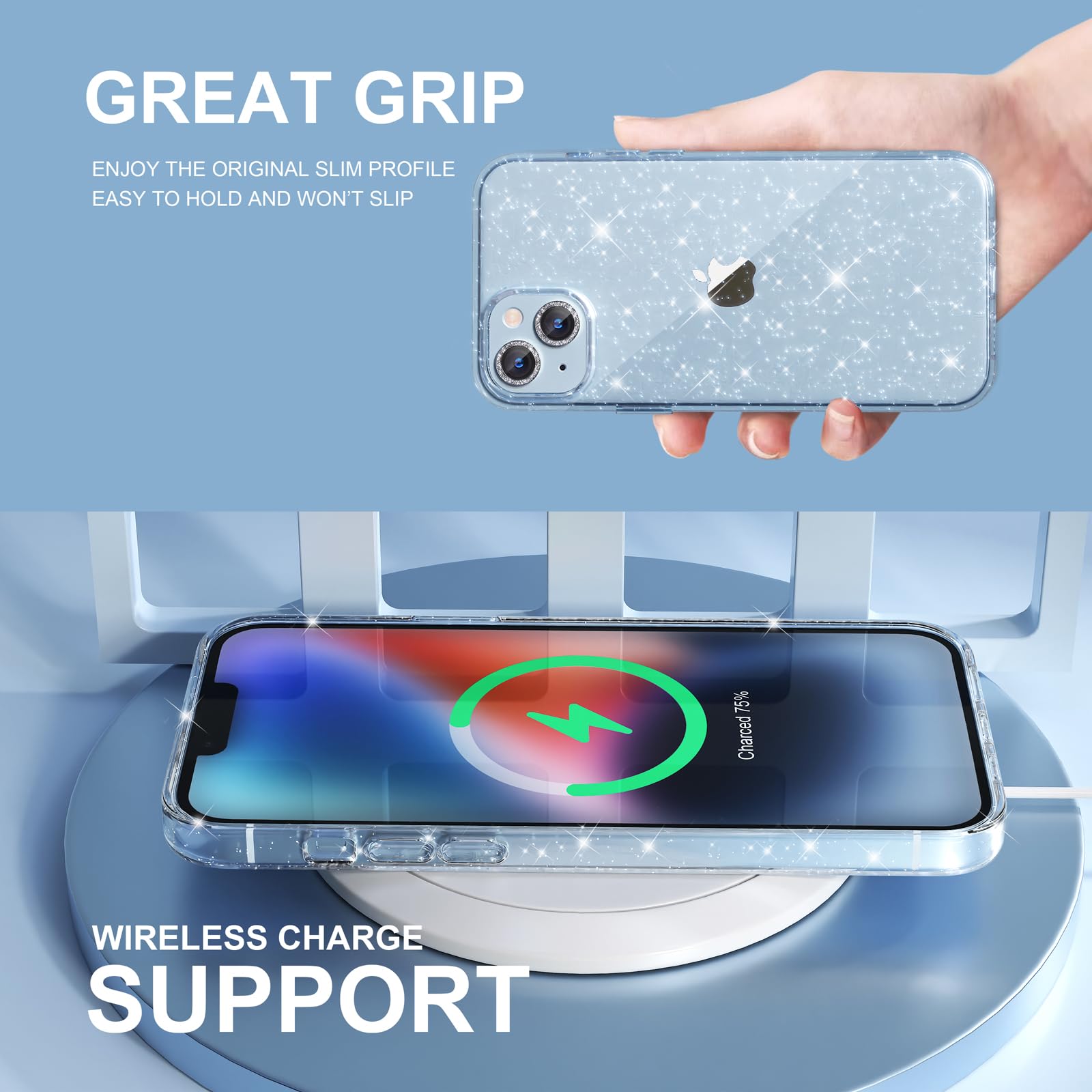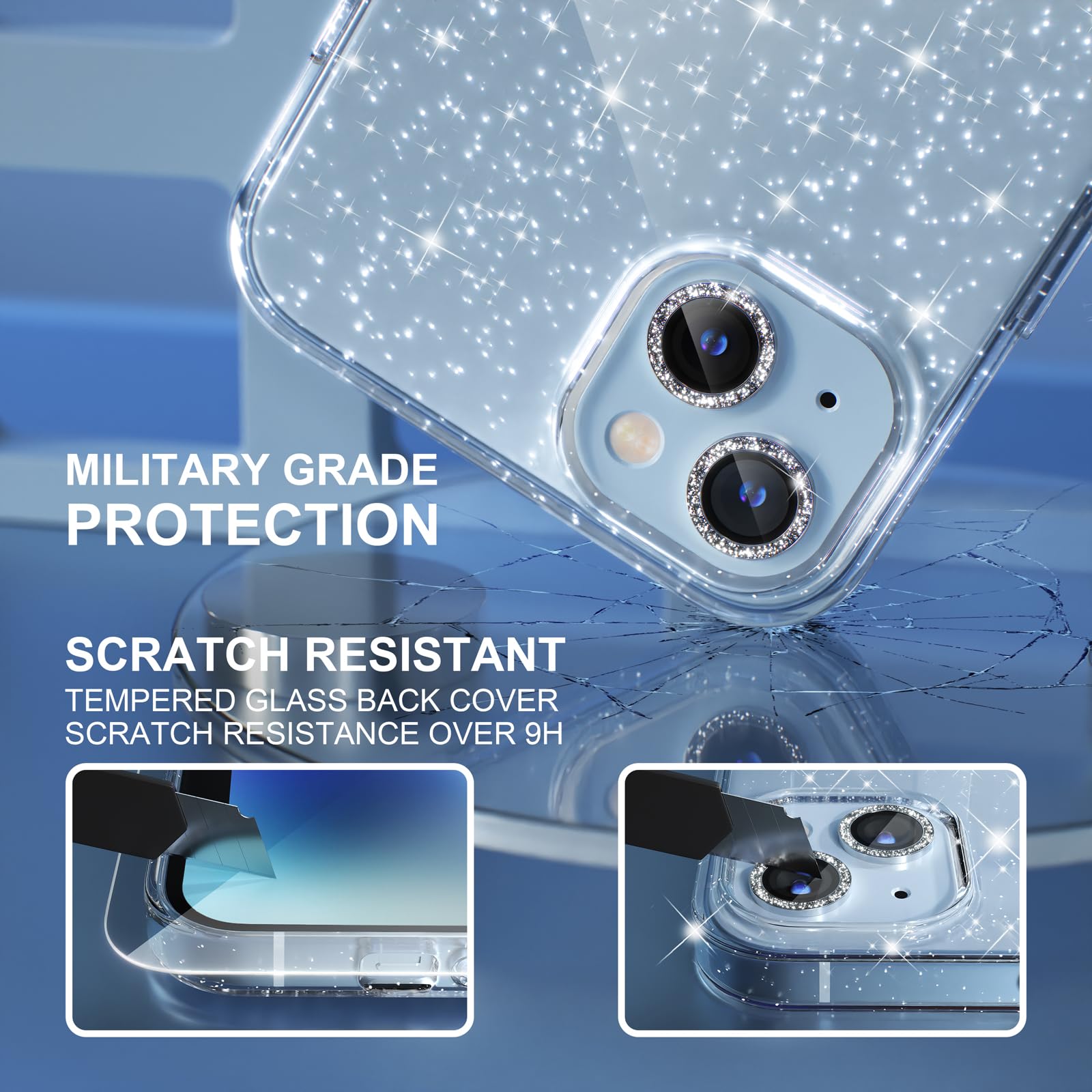 Full Glitter Design: Both the back and the side frame are full of glitter and come with a set shiny diamond camera lens protective cover, making your iPhone 14 Plus more feminine and bringing more compliments