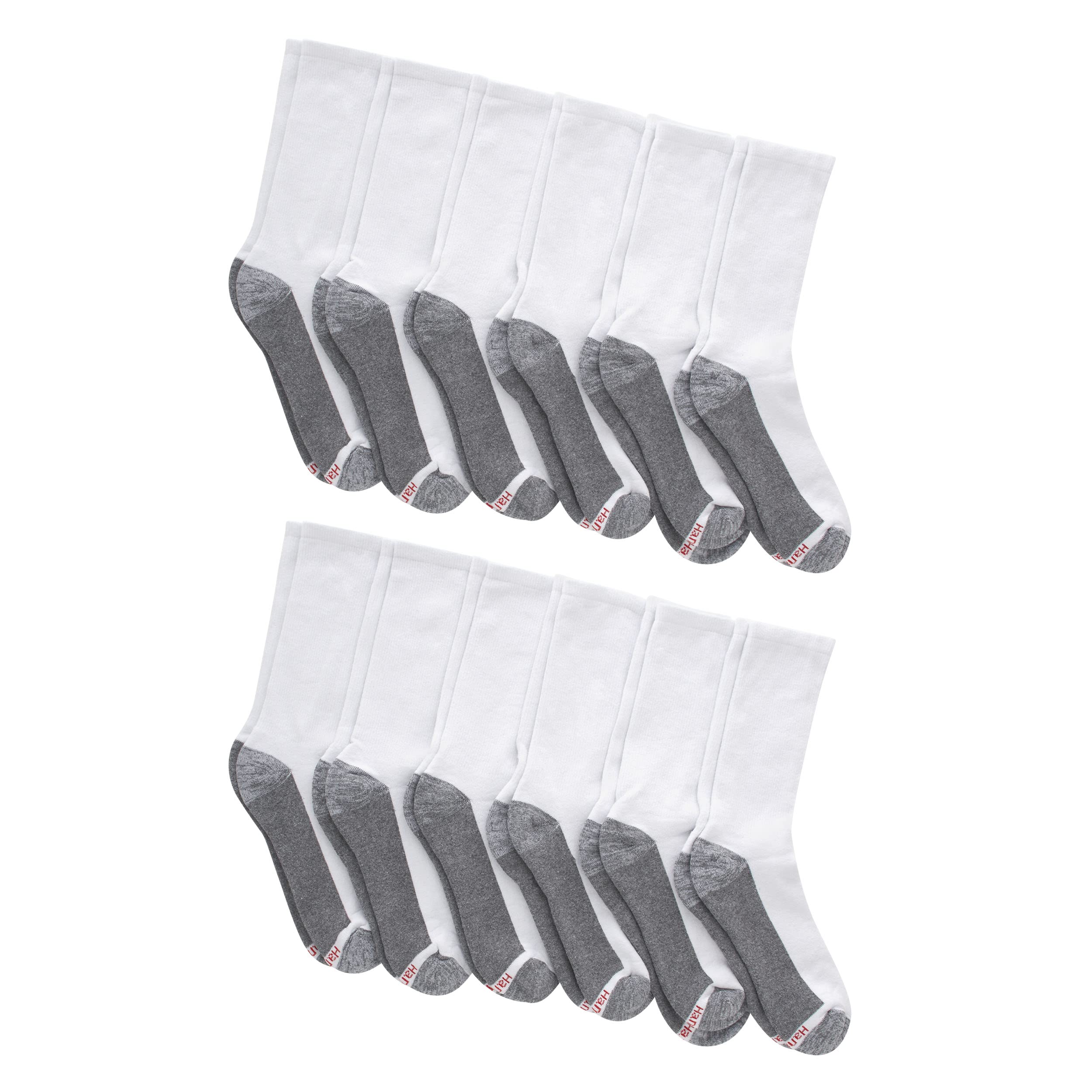 Description For sports or everyday wear, you'll appreciate the comfort and construction of Hanes® Max Cushion crew socks. These soft but Double Tough classic crew socks are made to last with a reinforced heel and toe, all the while cradling your foot with extra cushioning you'll feel with every step. These basic crew socks for men are made with Hanes' high-tech features, including Cool Comfort® fabric that wicks away moisture to keep feet cool and dry, and FreshIQ™ advanced odor-fighting technology that attacks odor-causing bacteria to keep feet smelling fresh. Smooth toe seams enhance comfort even more, and a touch of spandex in the fiber blend assures a stay-in-place fit. Stock up on these made-to-last crew socks and fill your sock drawer with comfort.
