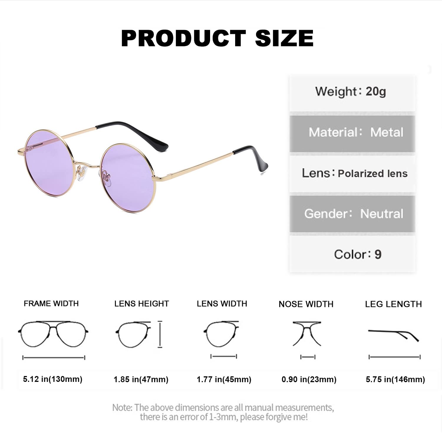 ☀VINTAGE DESIGN: The retro design of gold/black round frame with different colors of polarized lenses. The small round frame sunglasses with hip-hop style are very suitable for daily wear, or as accessories for parties and cosplay costumes. This is always the best choice.