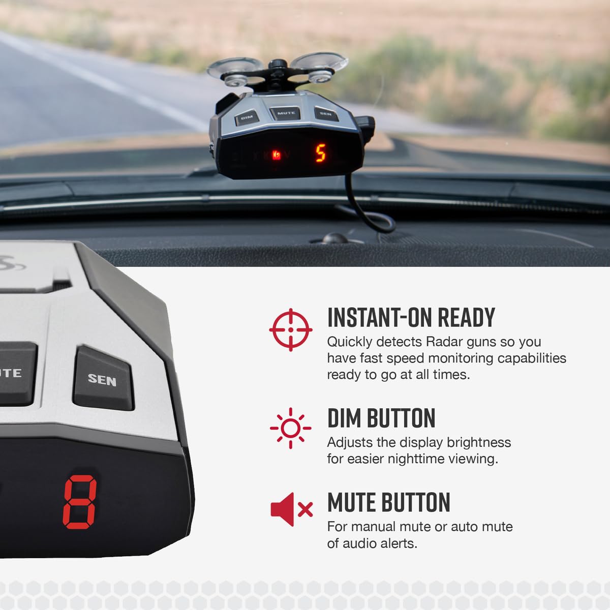 Instant-On Ready: Quickly detects radar guns so you have fast speed monitoring capabilities ready to go at all times