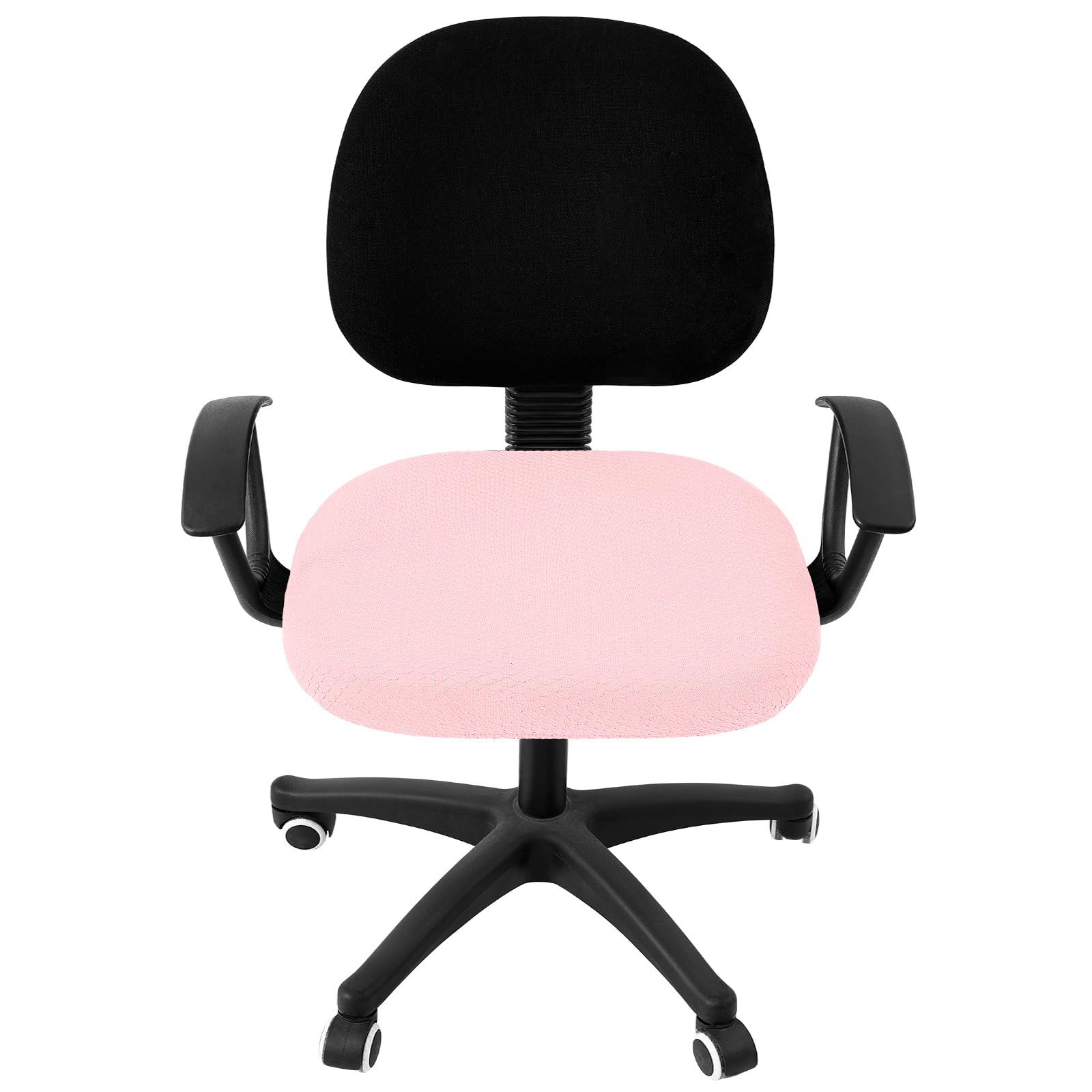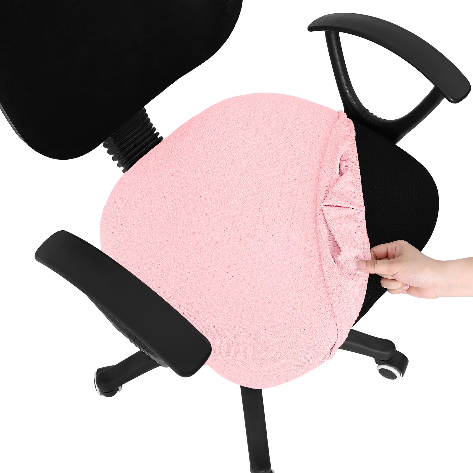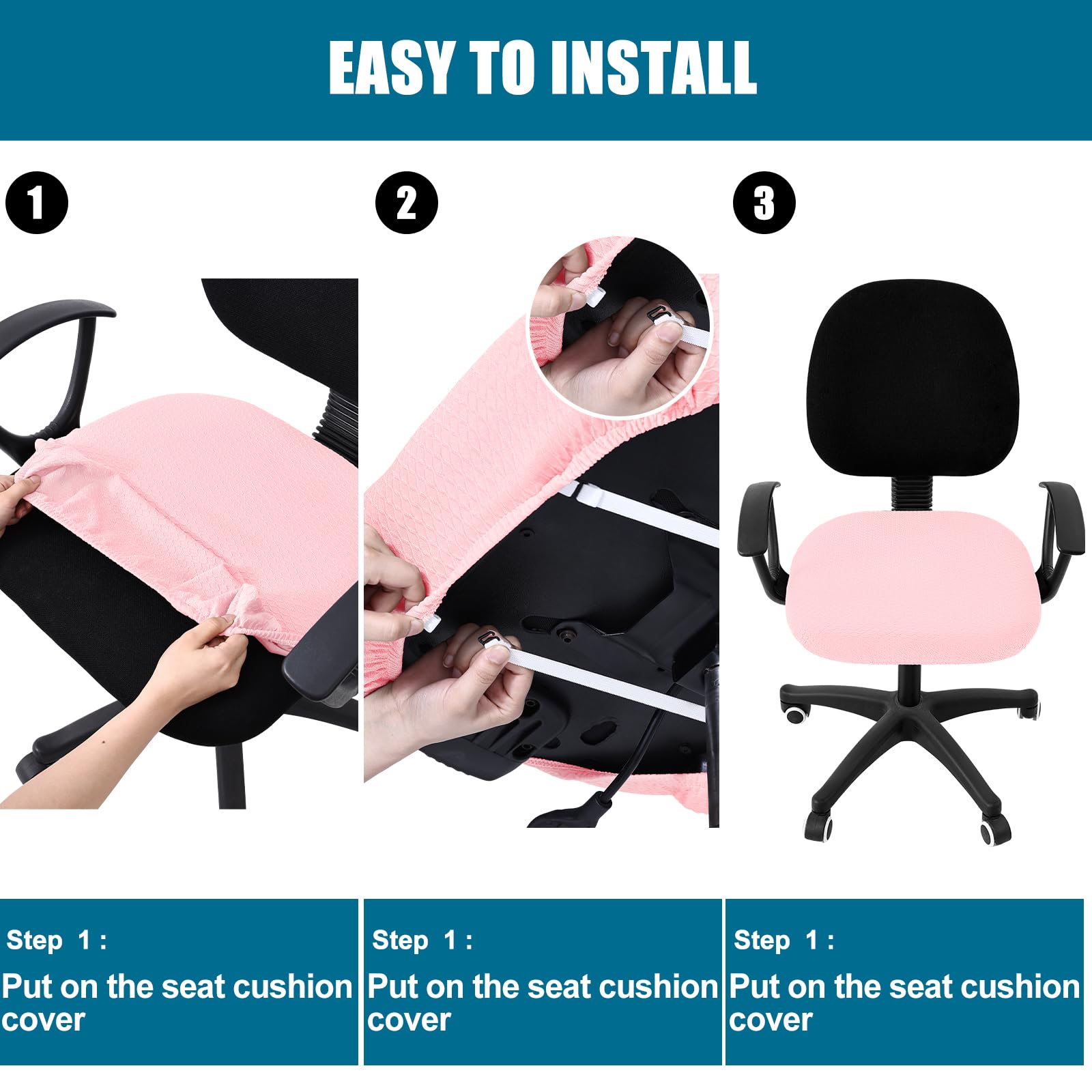 Material: Made of 92% polyester and 8% spandex, stretches to fit most office chairs easily. Equipped with elastic band, easy to fit and anti-slip, wrinkle resistance and reusable.