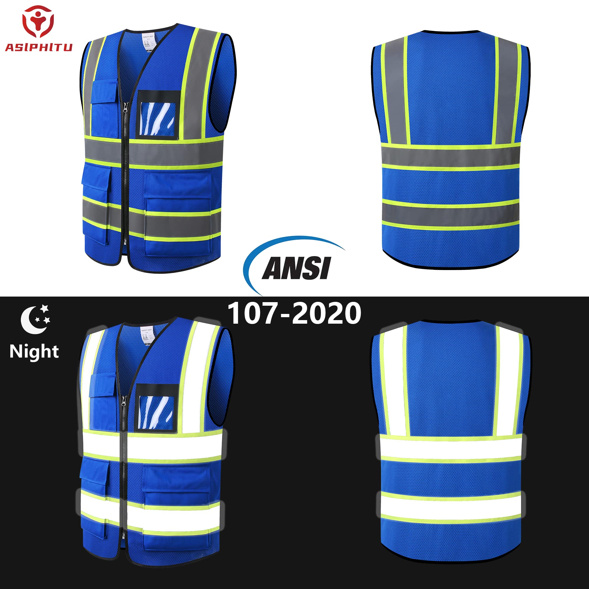 HIGH VISIBILITY: Asiphitu high reflective vest bring safety visible both day and night with the high visibility 2-inch wide high reflective silver tape.The safety vest raiders 360-degree reflective light waves to provide protection in any lighting condition while working or outdoors.