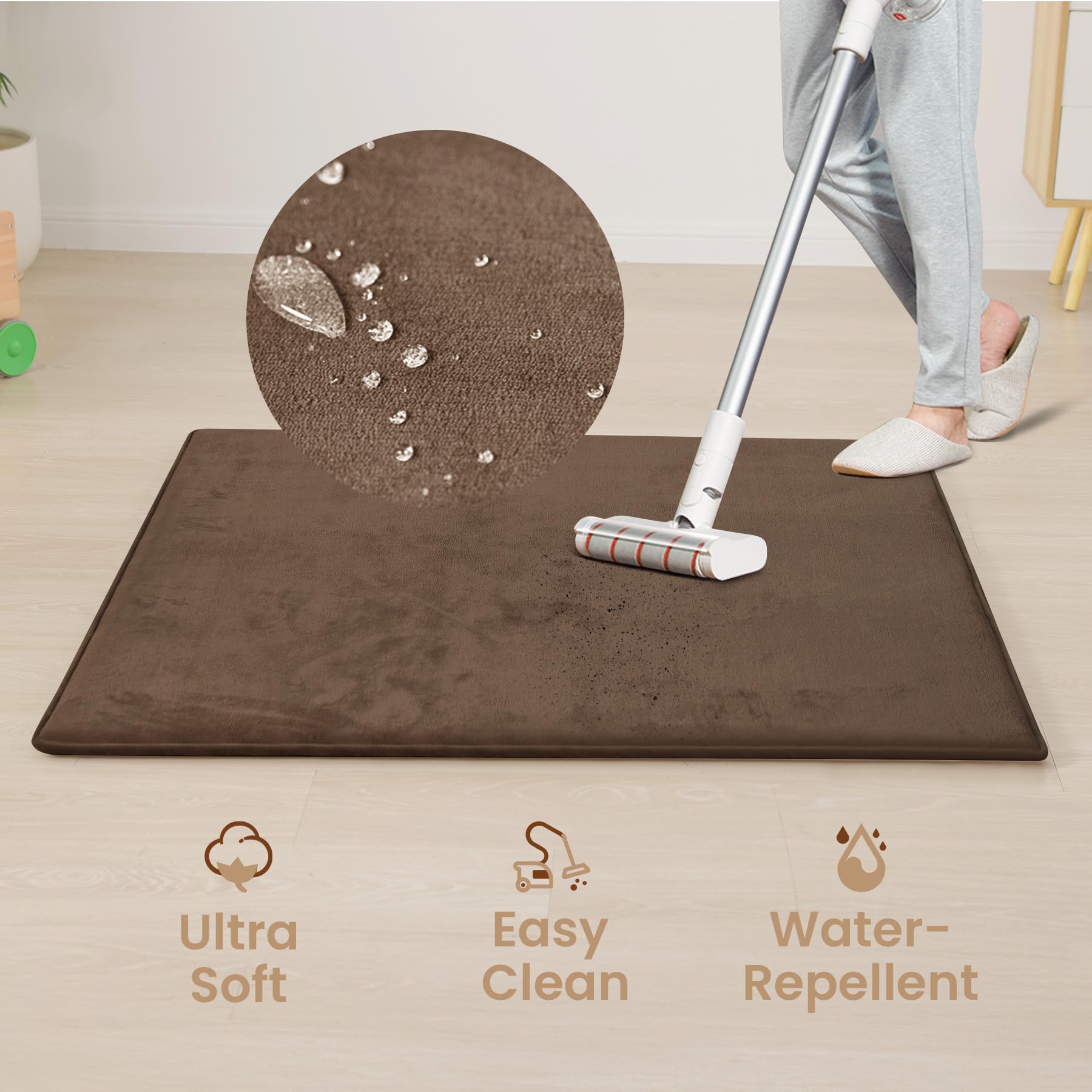 Water-Resistant & Easy-Clean Coral Velvet:The soft, water-repellent coral velvet fabric repels spills and messes, making cleanup effortlessβideal for infants and toddlers during feeding, play, or tummy time mat activities.