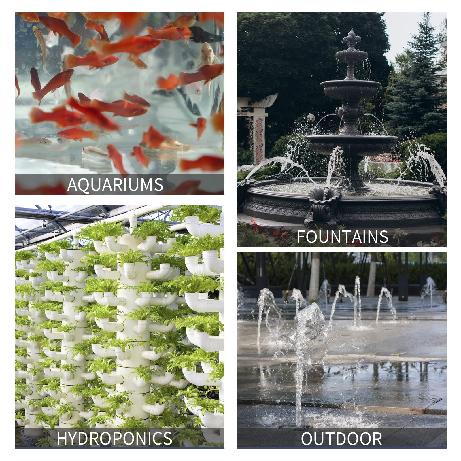 Multi Function: The fish tank pump can help you circulate and drain your aquarium, and creat a nature world for the fishes. Aquarium pump is very suitable for aquariums, ponds, fish tanks, fountains, waterfalls, backyard, garden, hydroponic systems and many more
