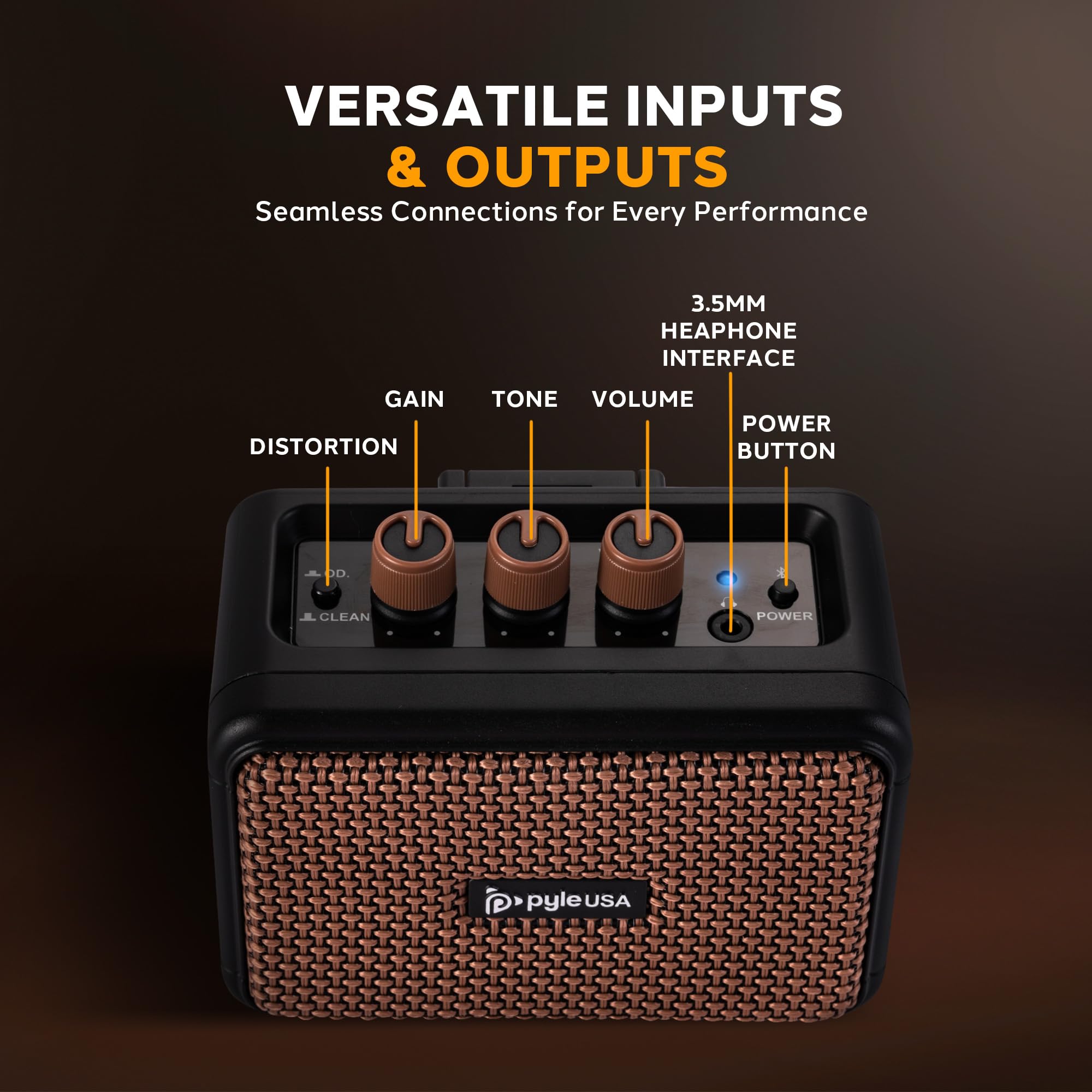 VERSATILE INPUTS & CONTROLS - Features 1/4" phone jack input and headphone output for flexible connectivity. Includes easy-to-use controls for volume, tone, gain, and drive settings, giving you full control over your sound as a perfect guitar amplifier.