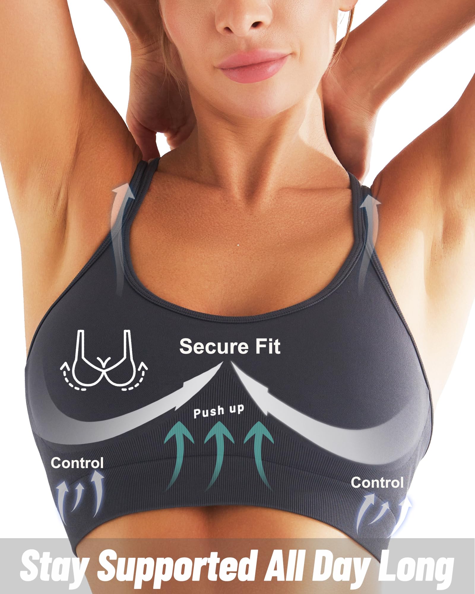 【EYE-CATCHING CONFIDENCE】Celebrate your fitness journey with the Everyday Cross Over Sports Bra.Designed with upper body workouts in mind, this sports bra is your go-to choice for highlighting the strong back you've been sculpting.Delicate crossover straps at the back and a flattering scooped neckline come together to give you an elegant and attractive look. It's crafted from sweat-wicking fabric and the elastic underband provides the essential support you need for those heavy lifting sessions.