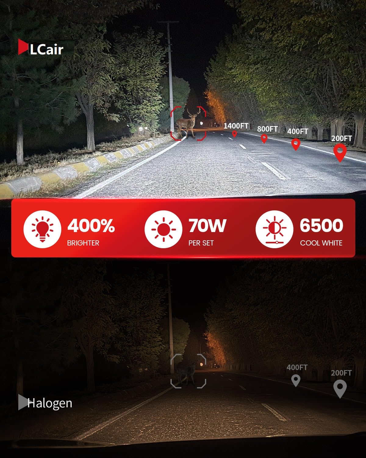 Enhanced Visibility: 400% brighter than stock bulbs. They emit a cool white light close to natural daylight, reducing visual fatigue and ensuring safer driving at night.