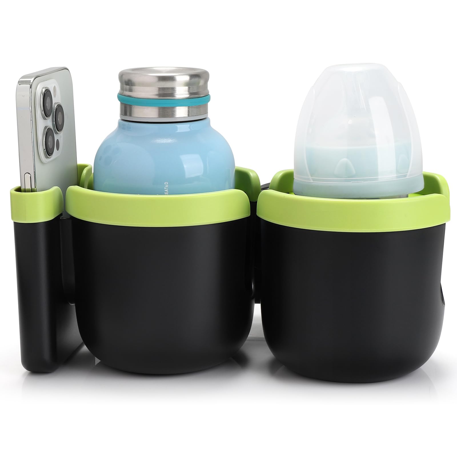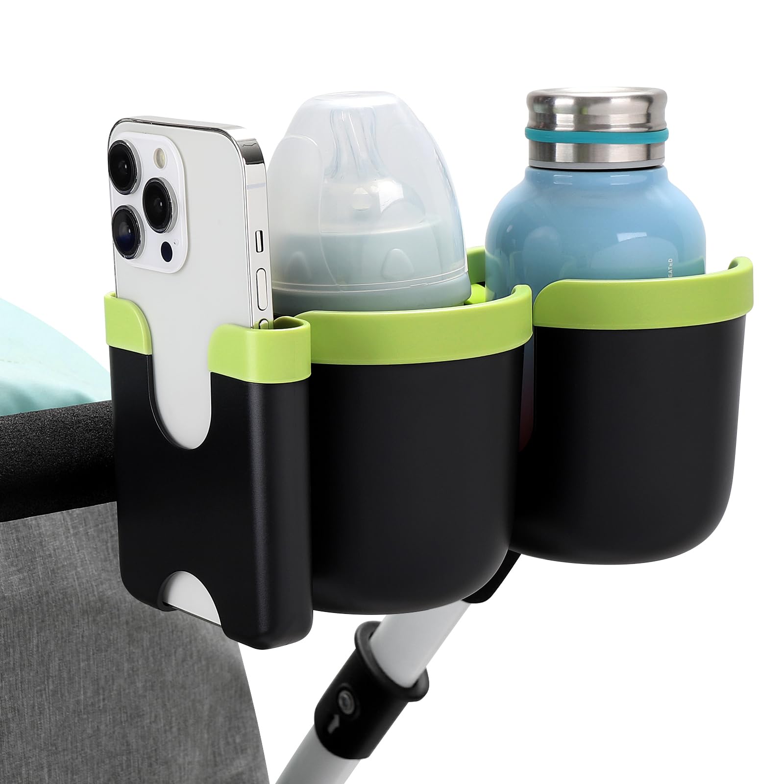 This 2-in-1 stroller cup holder with a phone holder, it can load drinks bottles and cell phone at the same time. You can see new messages, incoming calls in the first time when you are pushing a stroller or running on a treadmill. It is applicable to most cell phones on the market.