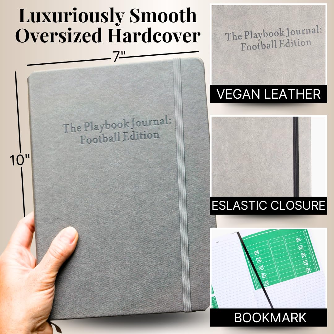 Crafted with luxurious vegan leather, this water & scratch resistant football coach notebook features durable threaded binding that lays flat for easy writing. Football coaching books ideal for football practice & plays & drills.