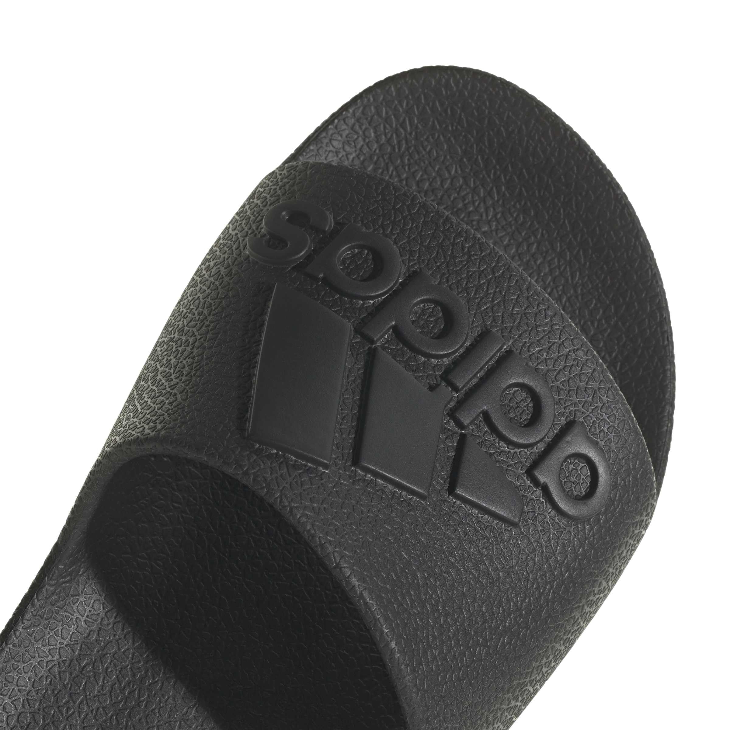 Description These Adilette Aqua Slides bring welcome comfort to tired feet. They have a one-piece molded EVA upper and a plush Cloudfoam footbed. Hit the shower in adidas 3-Stripes.