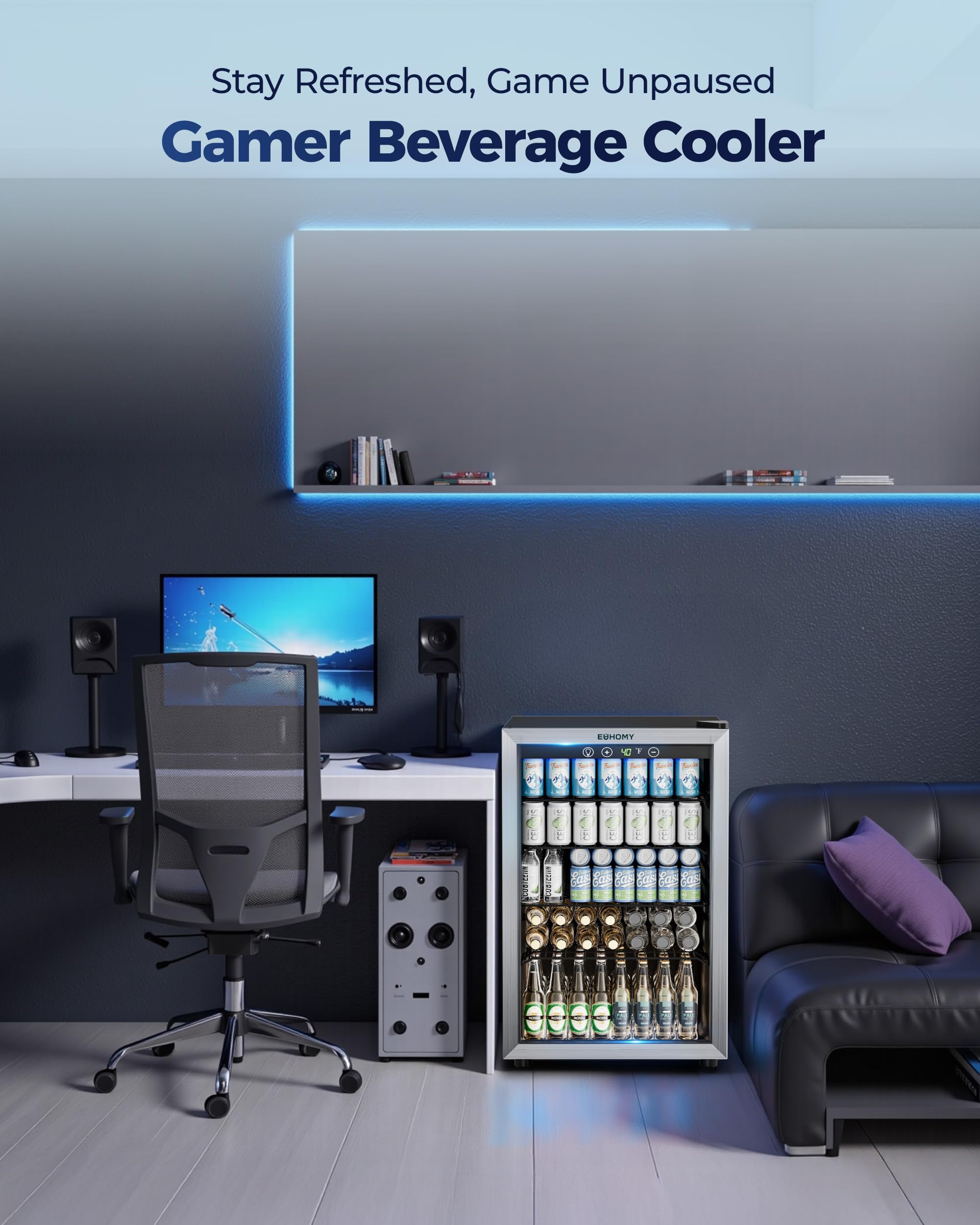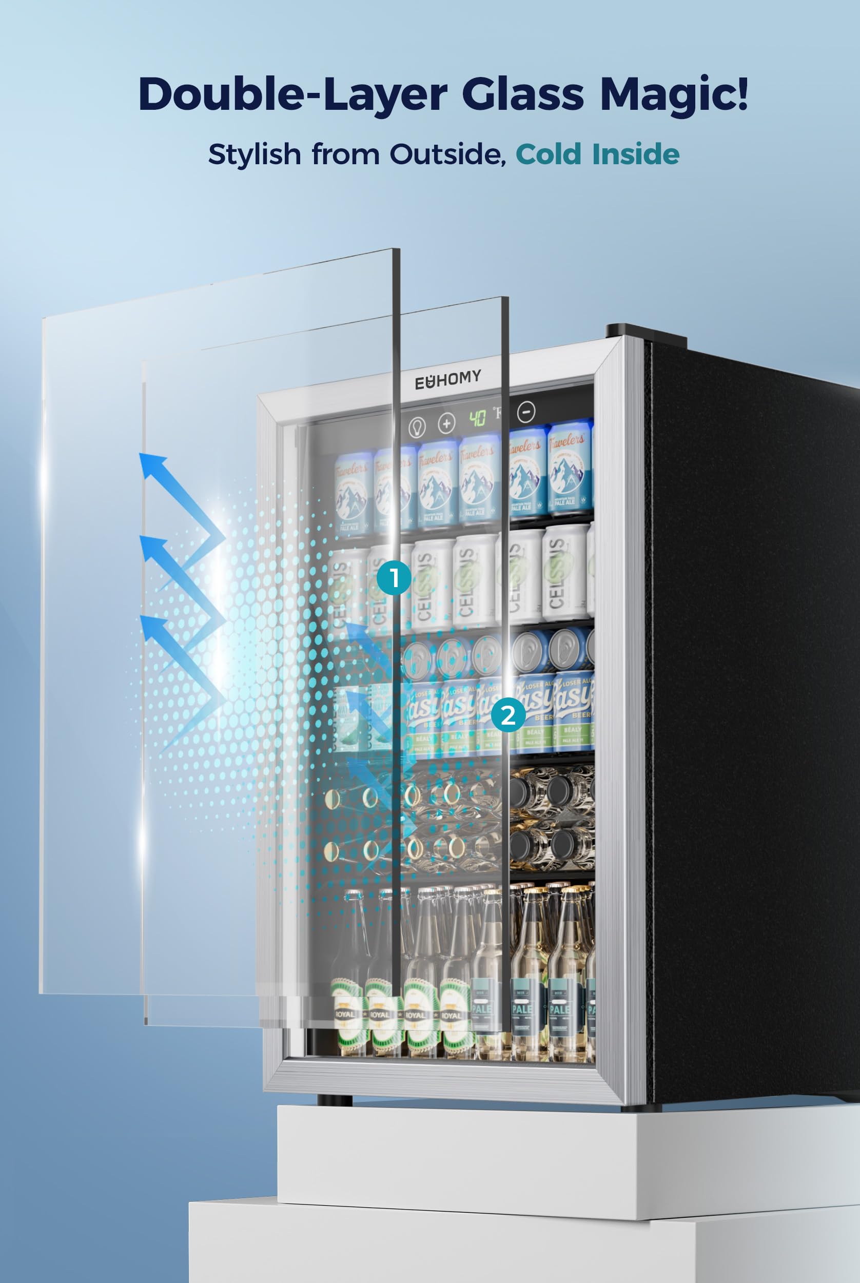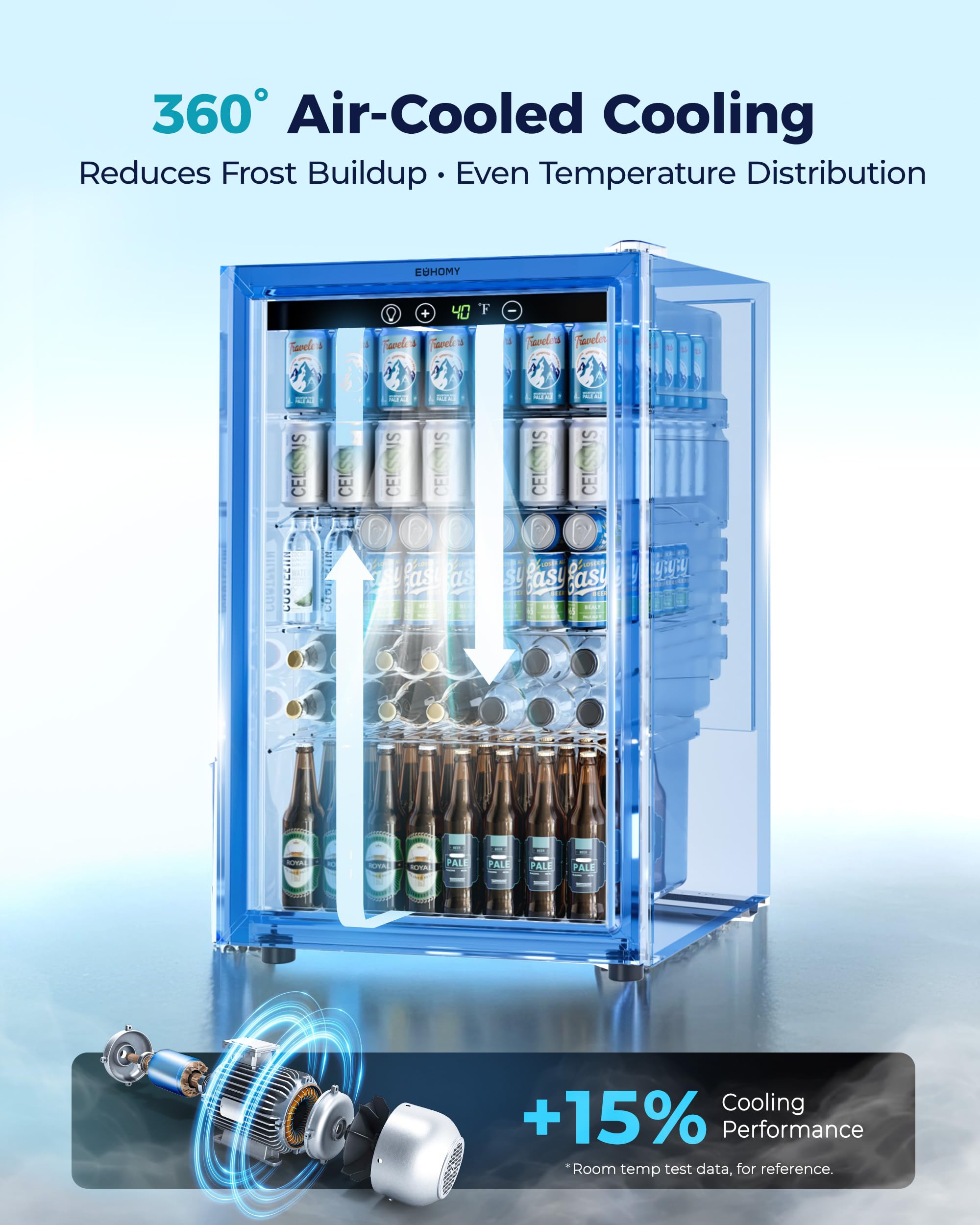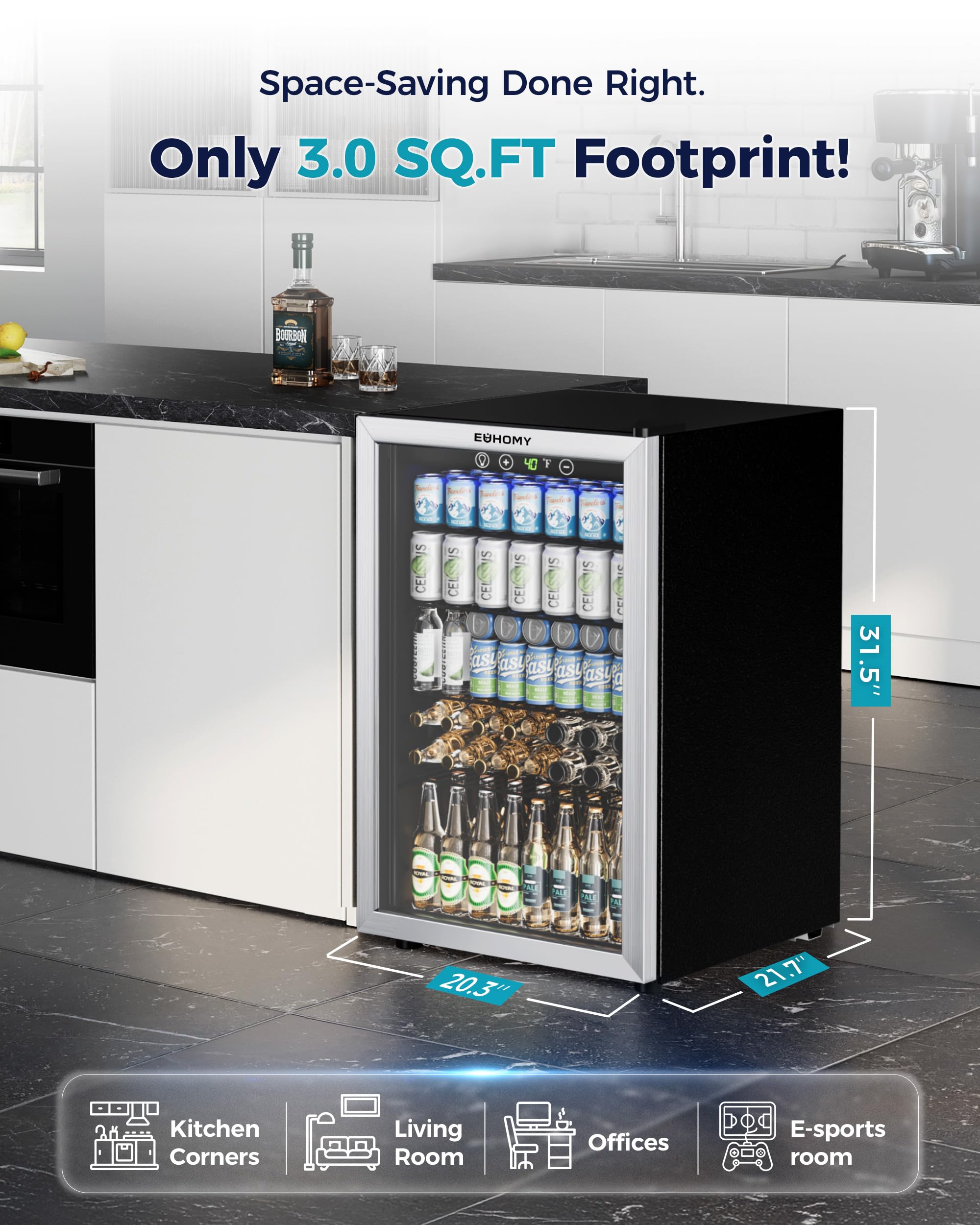 【Compact Size and Huge Capacity】This compact beverage refrigerator sports a roomy interior could effortlessly holds up to 145 cans of your favorite beverages or 37 bottles of white or red wine, making it an ideal mini fridge for homes, offices or for any special event