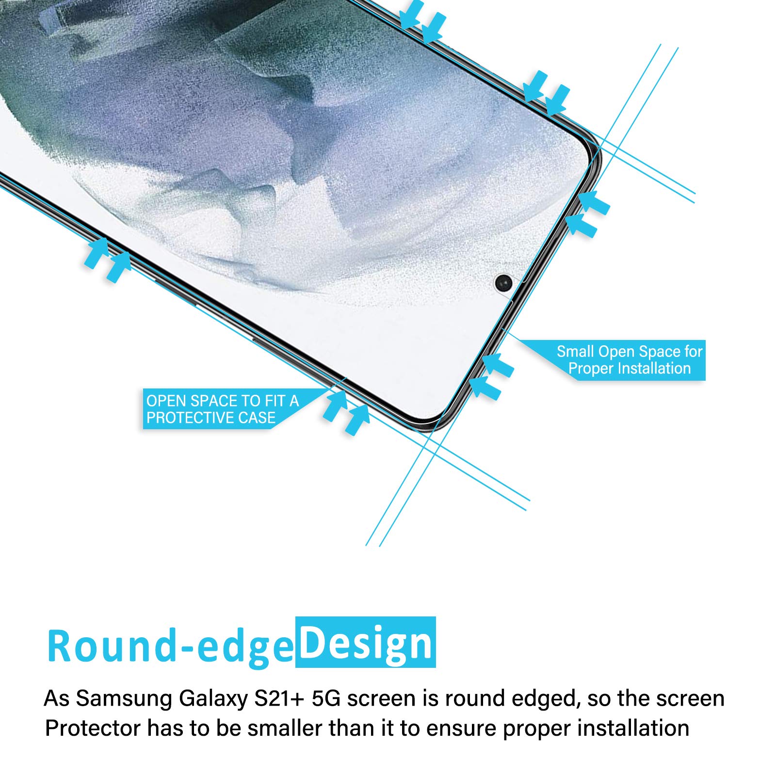 The screen protector provides the maximum protection for the Samsung Galaxy S21+ 5G (6.7) touchscreen. The space between Samsung Galaxy S21 Plus / S21+ 5G (6.7") and the screen protector enables the proper space for the installation of most phone cases."