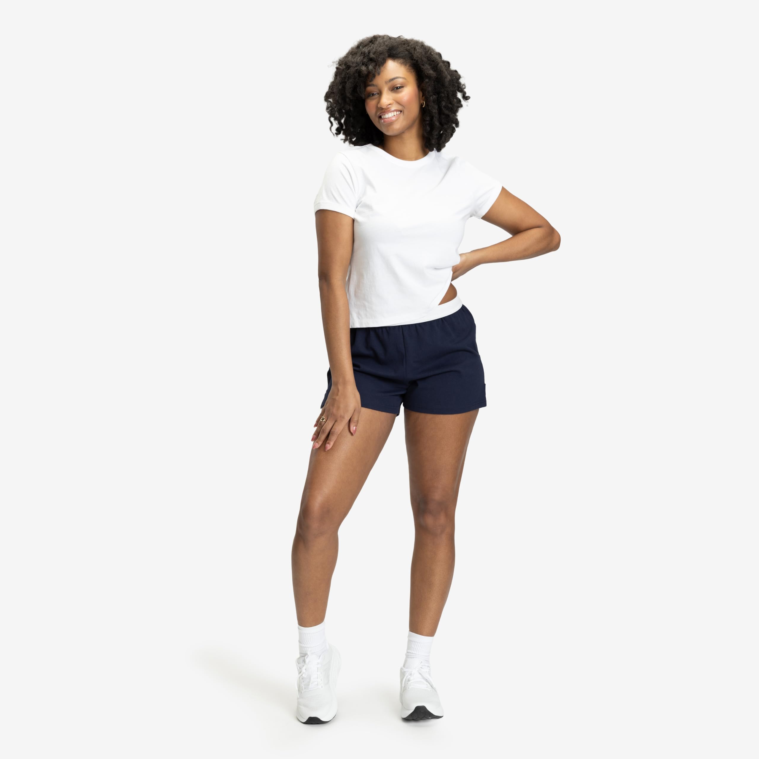 Description Soffe creates activewear that inspires and empowers all walks of life - from military to athletics and everything in between. Built on a proud legacy, our iconic designs deliver quality products that make you look and feel your best and are accessible to everybody. The authentic Soffe Short, also known as the cheer short, is the go-to short for effortless comfort in a classic style. Made from ultra-soft fabric, it’s perfect for everything from workouts to lounging. Designed with our iconic exposed white waistband and a flattering side V-notch, it’s all about fit that moves with you. Roll it once for a low-rise look or twice for ultra low. Your style, your choice. You’re going to want one in every color. Designed for a snug, comfortable fit that moves with you. Size up if you prefer a looser fit. Models are wearing a size Small.