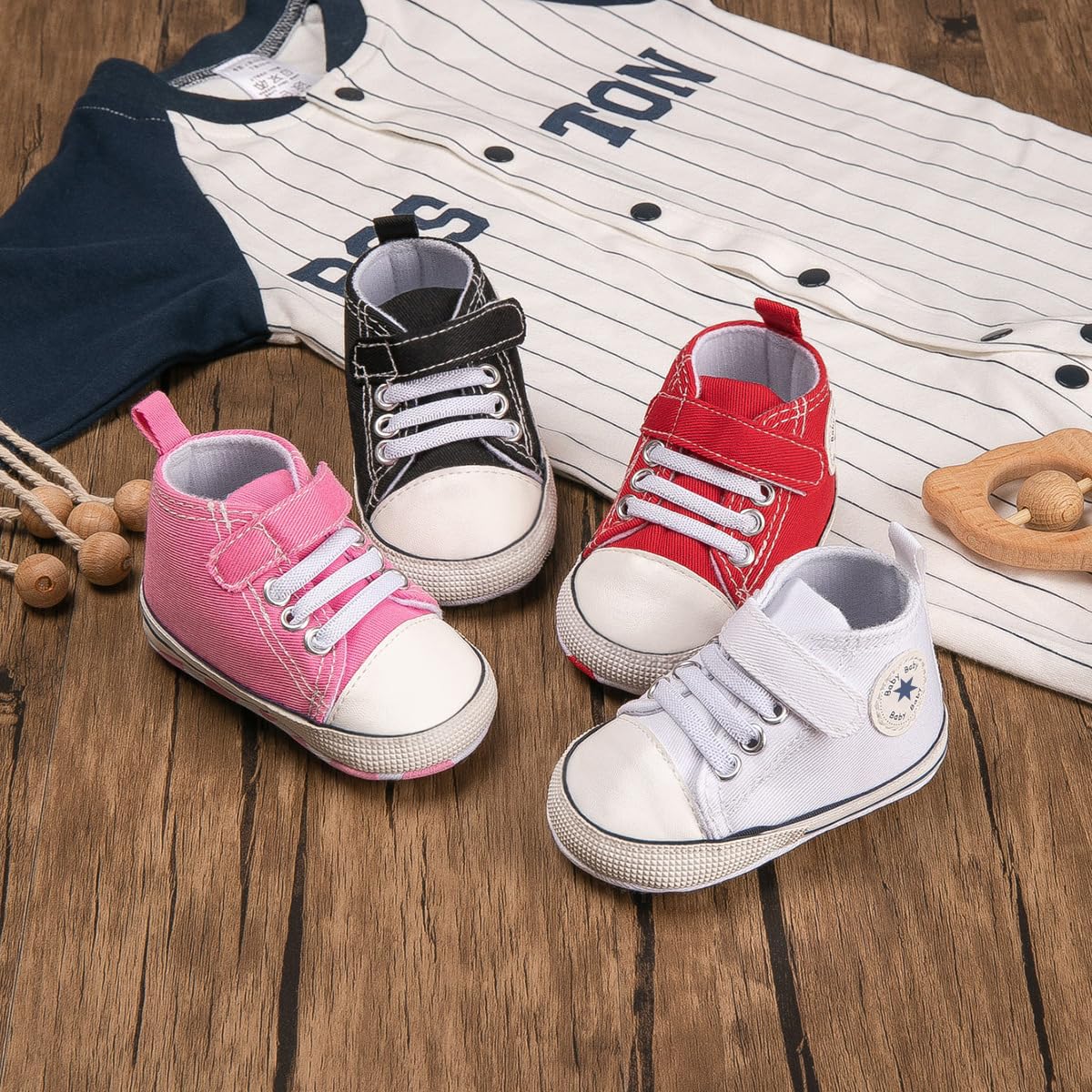 【Quality】-- Safety Tested for Peace Of Mind, and look aesthetic,No Any Stimulation to The Skin of Baby.This baby sneakers are made of high quality soft and breathable canvas upper, which is very good for baby's feet growth in crib.