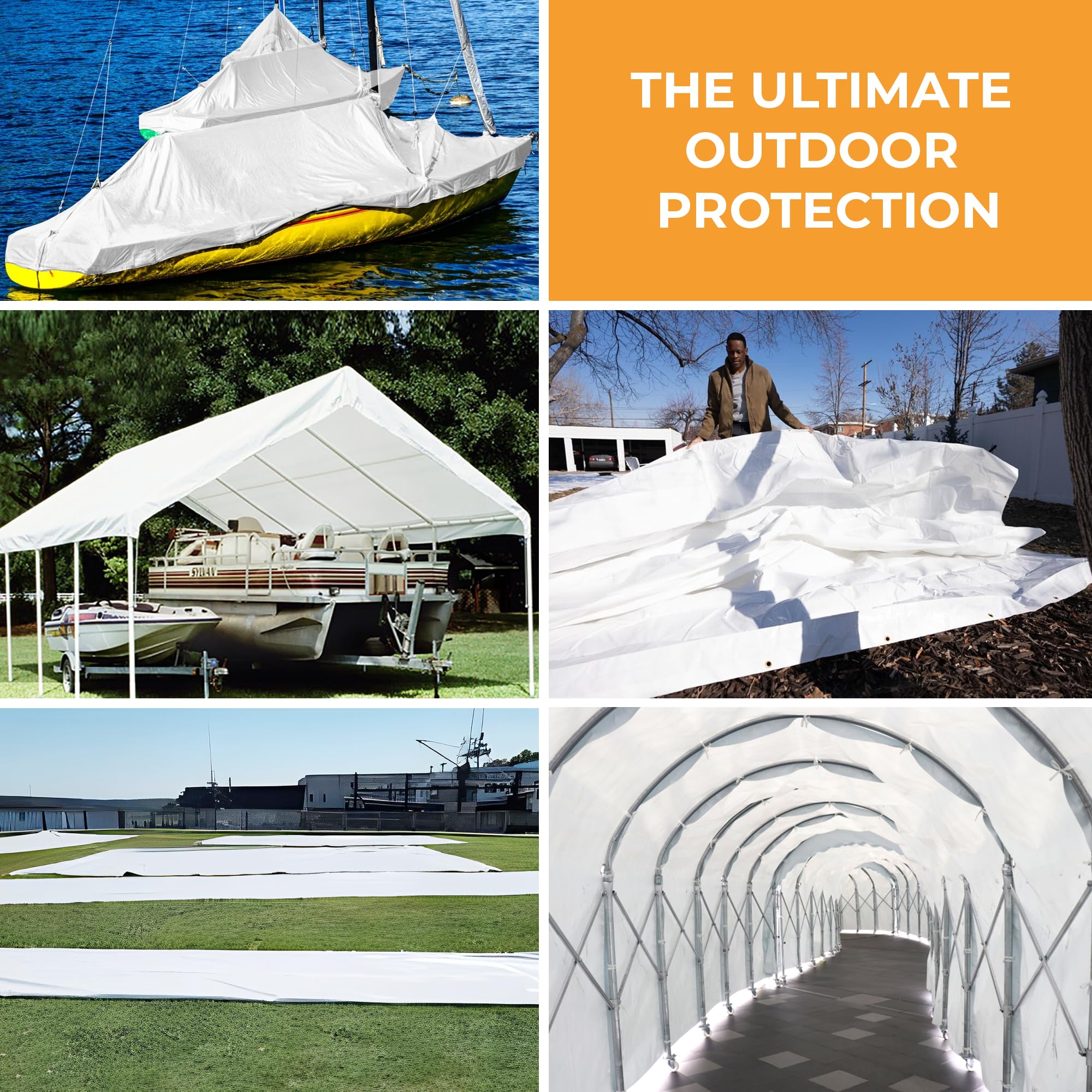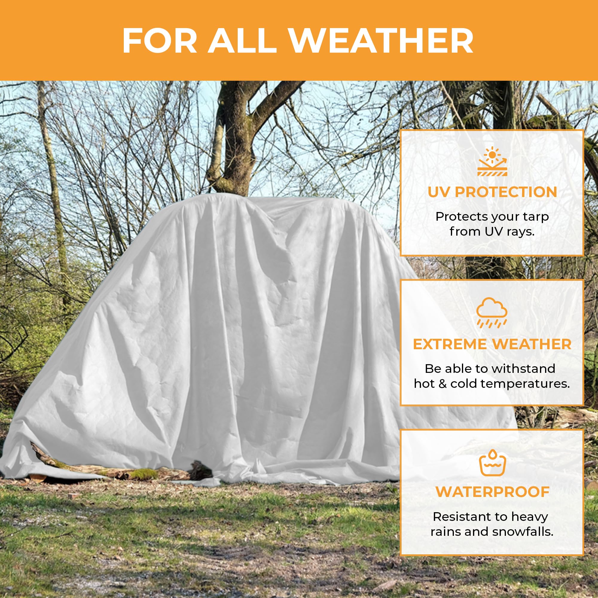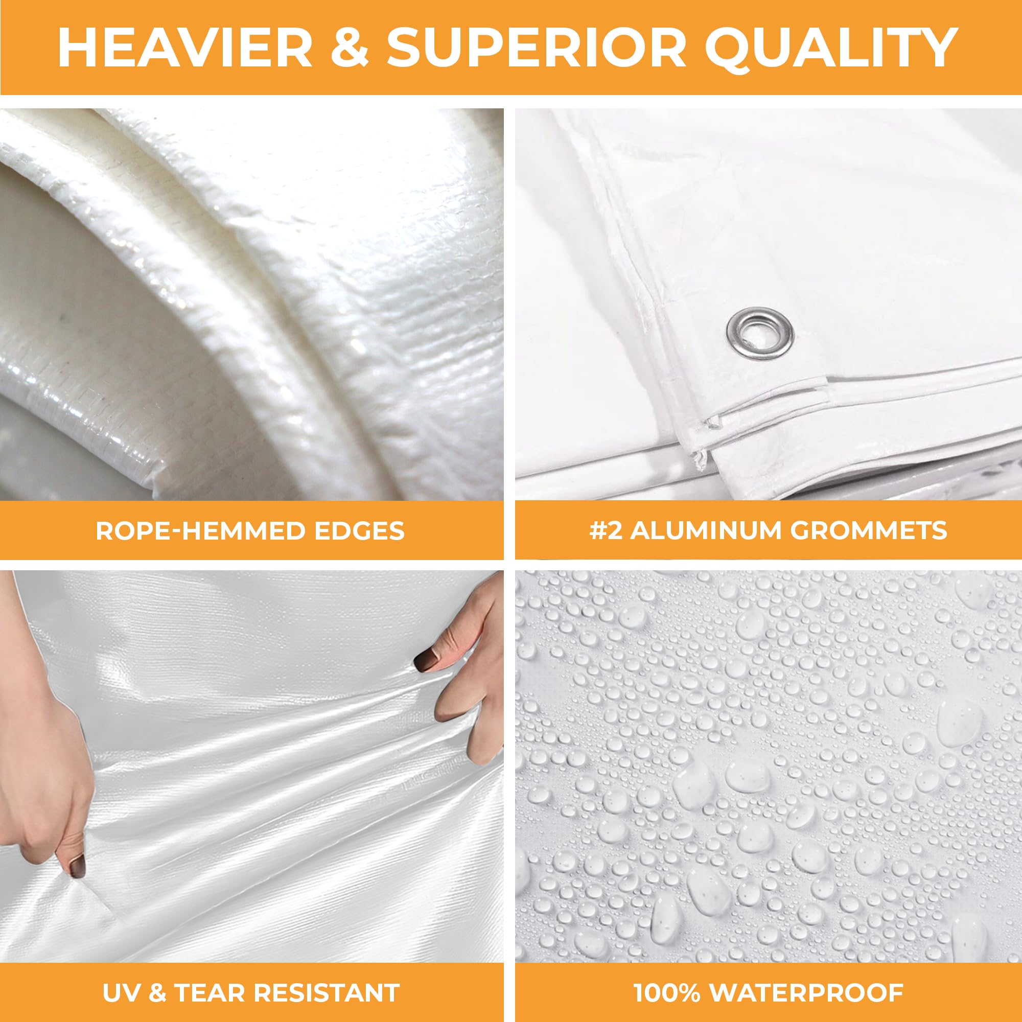 VERSATILE USES: Whether you’re shielding your boat car or truck, protecting a construction site, or covering camping gear, this white plastic tarp is ideal for all kinds of utdoor uses. It’s great for use as a waterproof cover for furniture, covering equipment on trucks or trailers with flexible protection that flexible and easy to use.