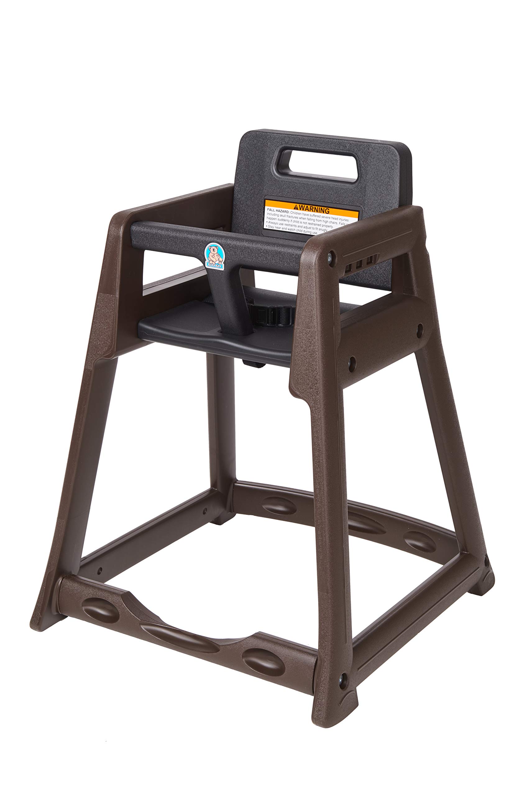 Restaurant staple with its updated design on the traditional plastic high chair. Clean lines and smooth surfaces make for quick and easy cleaning. Durable constructions provides long lasting use. Integrated handle makes this chair easy to maneuver around the dining room. Meets the ASTM F404-18 and EN safety standards. Optional ASTM compliant tray (KB851) accommodates different feeding needs.