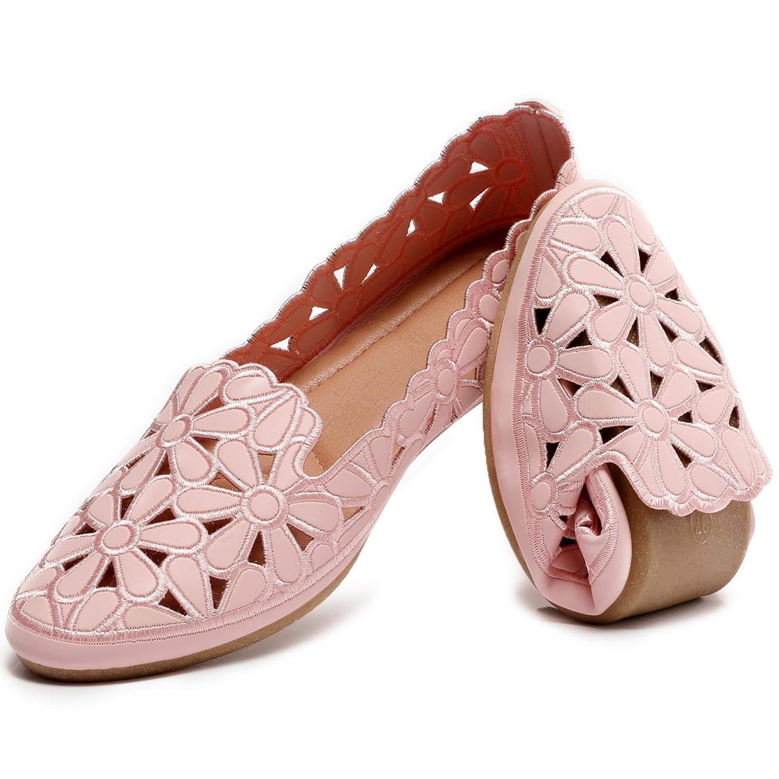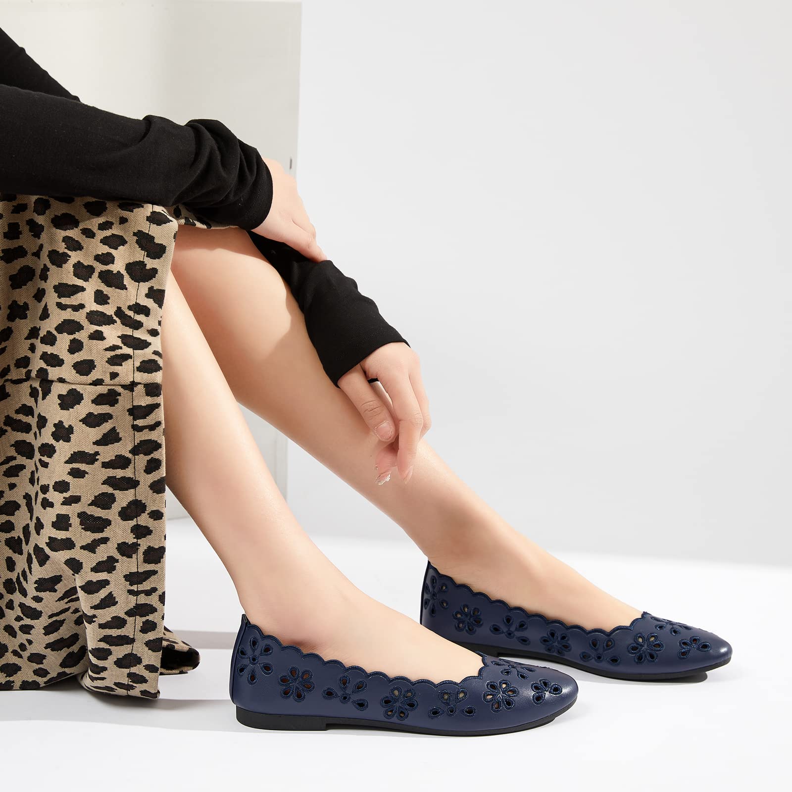 A little titht,wide feet pls size up!【Breathable & Soft】Womens Ballet Flats are made of PU Leather Upper with Breathable Eyelets,you will feel Breathable while walking all day.Fit with Padded Memory Foam Insole like walking in a cloud.