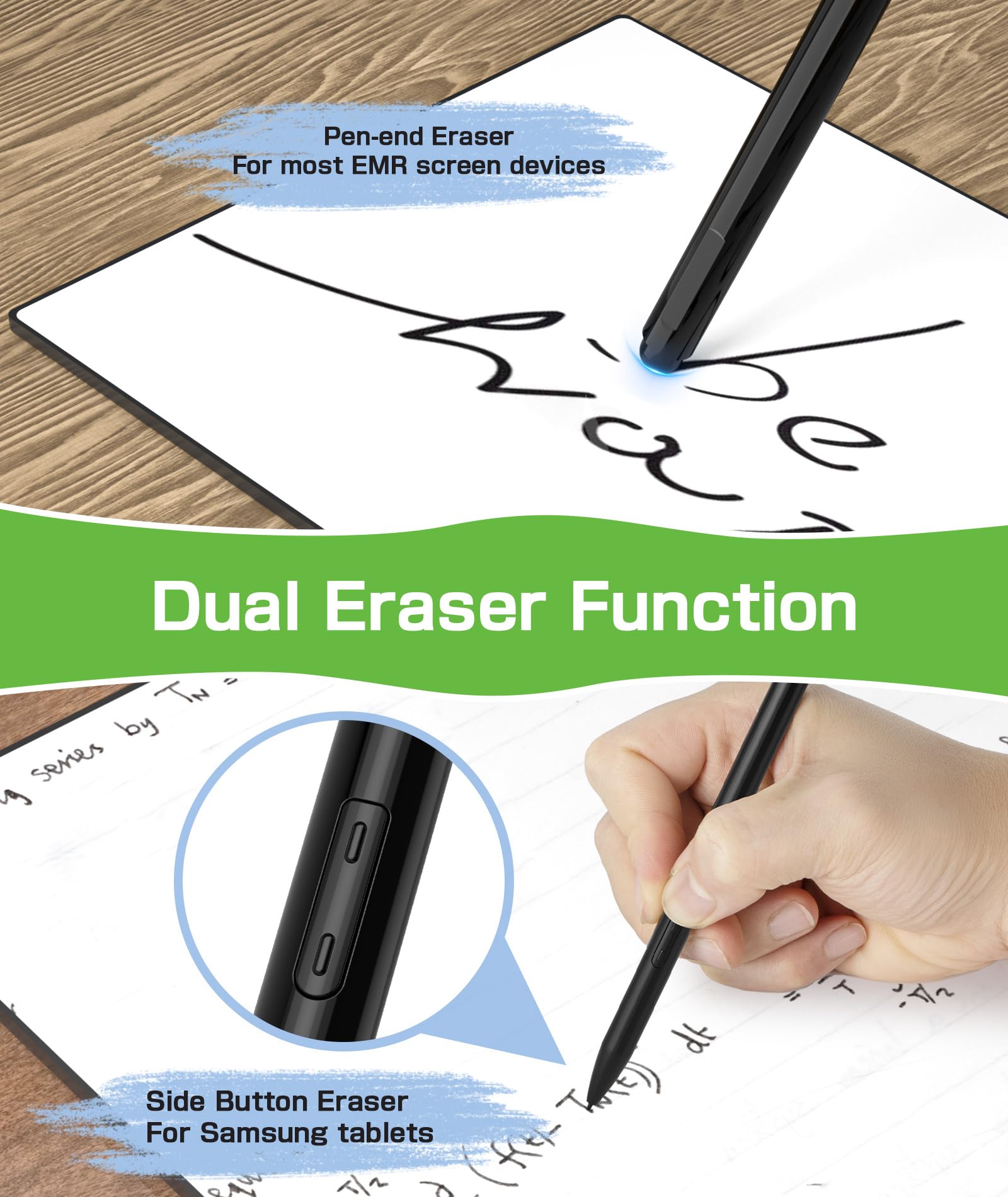 【Convenient Eraser Function】 Easily erase your work with the eraser located at the end of the pen. Simply flip the pen over to quickly remove lines and text. On Samsung tablets, press the side button to activate the eraser, providing added versatility during use.