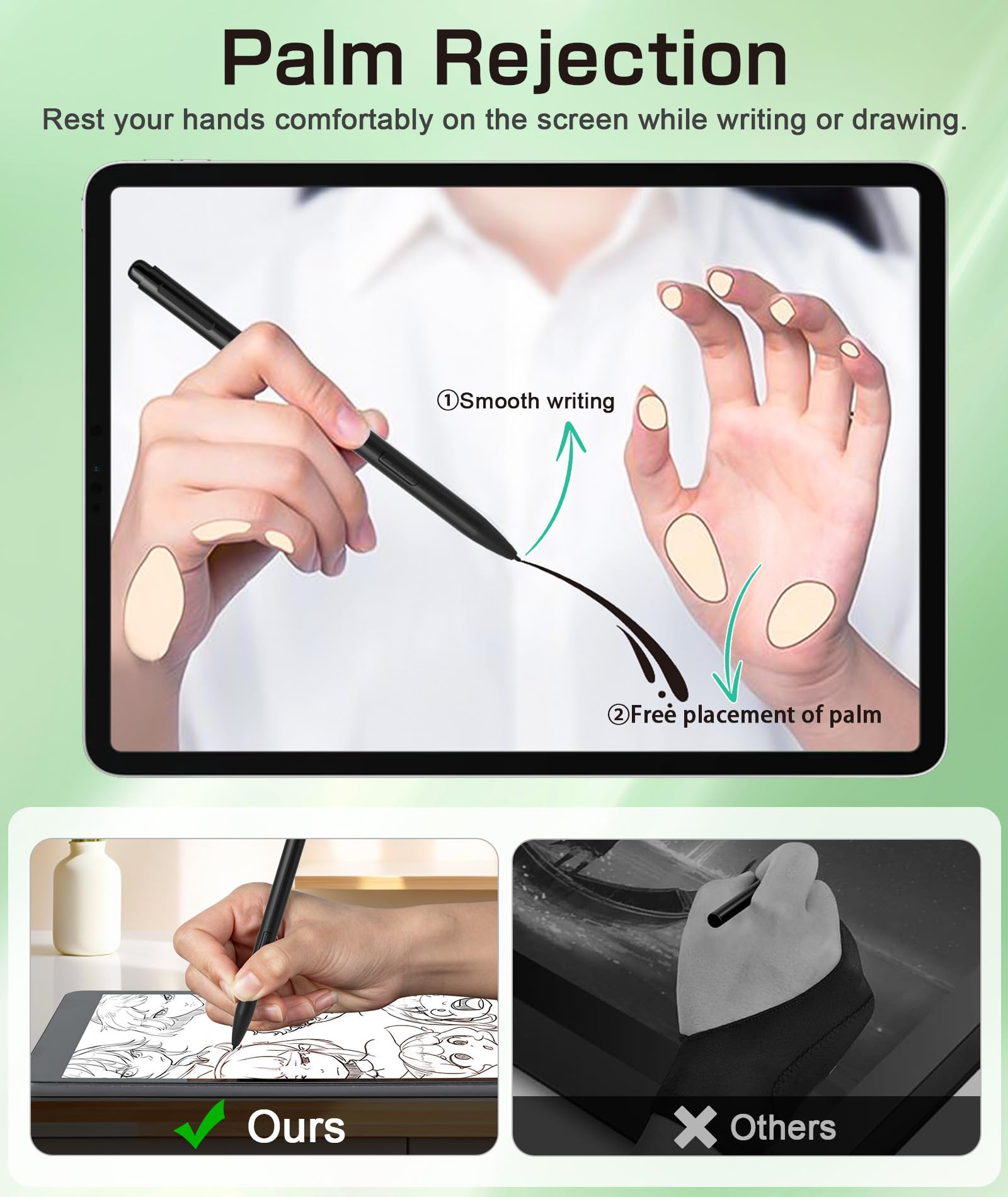 【Magnetic Support & Palm Rejection】With magnetic attachment, this EMR stylus securely attaches to the side of your device for easy storage and quick access when needed. Thanks to its palm rejection technology, you can rest your hand comfortably on the screen without worrying about accidental marks.