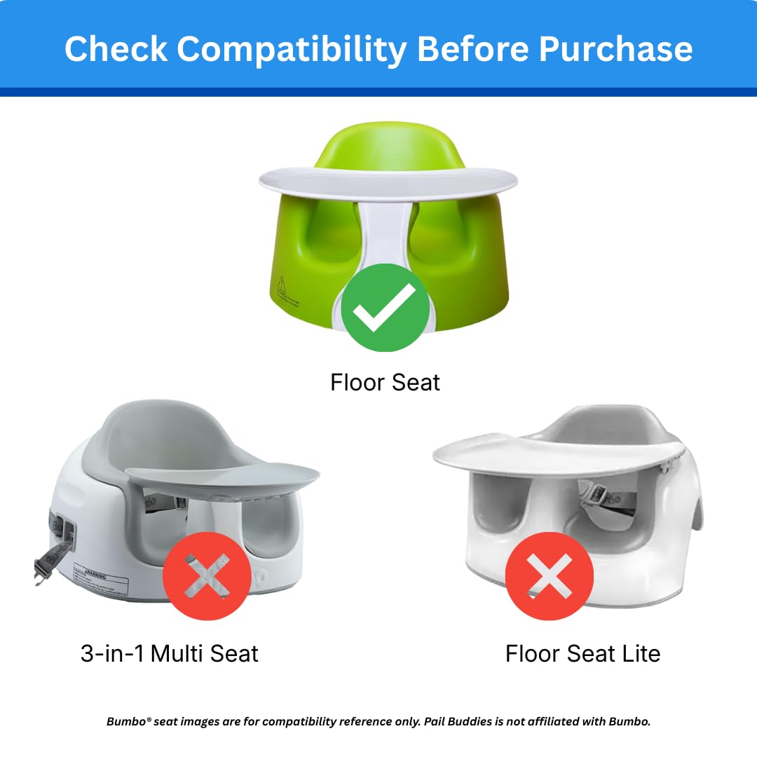 ✅ COMPATIBLE WITH BUMBO FLOOR SEAT: Our tray accessory attaches easily and securely to the Bumbo Floor Seat for Baby and stays firmly attached during feeding (Tray only, Bumbo Seat not included. Pail Buddies is not affiliated with Bumbo). Note: This tray is not suitable for 3-in-1 Multi-Seat or Floor Seat Lite.
