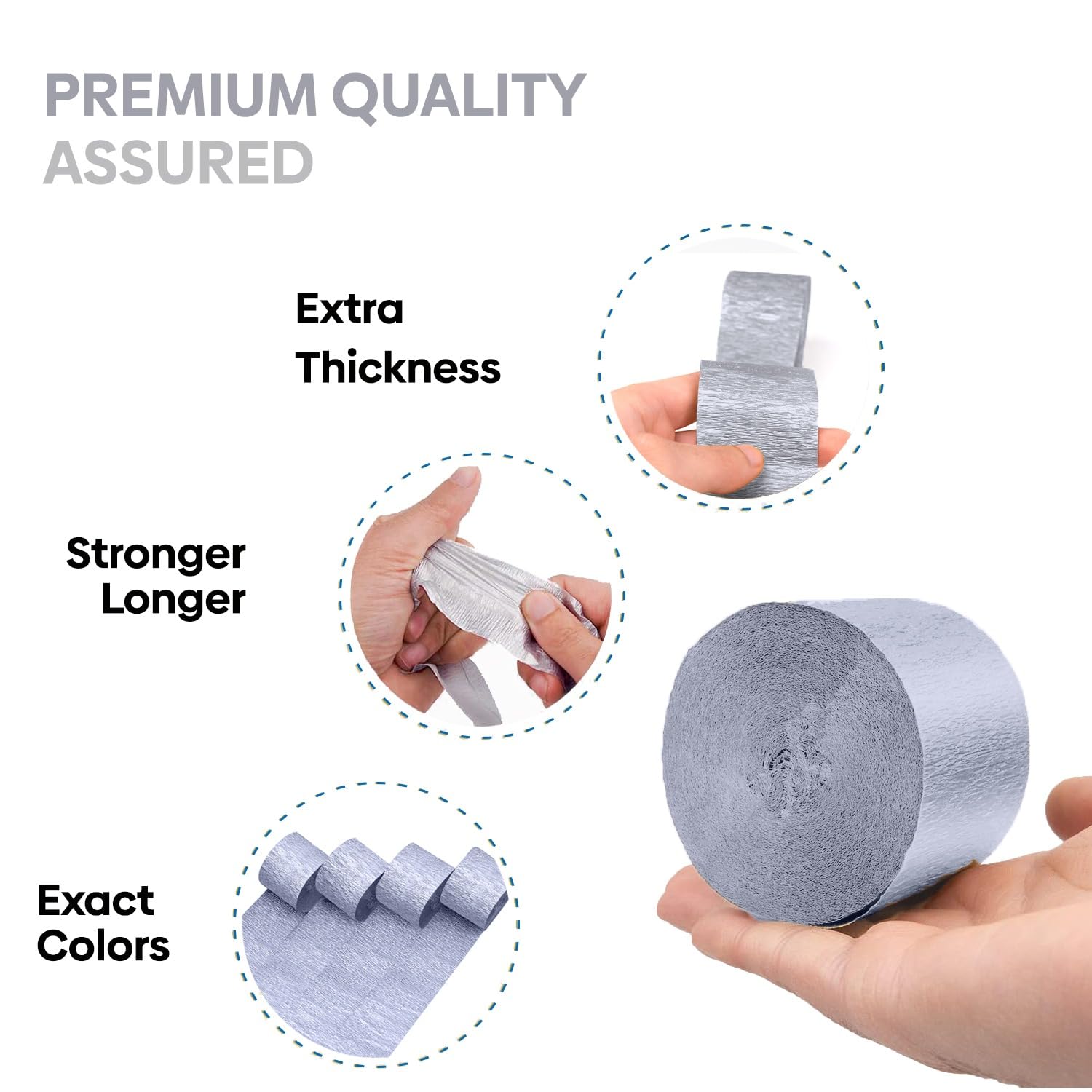 OPTIMUM-QUALITY MATERIAL: Our high-grade crepe paper streamers first coat with sizing and then creped to create fine grains for easy twisting and great stretch to retain their shape when used in art and craft projects