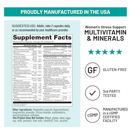USA MANUFACTURED, 3RD PARTY TESTED: NatureWise Women's Multivitamin with Stress Support is proudly manufactured in the USA with clean, non-GMO ingredients in a cGMP-certified facility with third-party quality control audits.