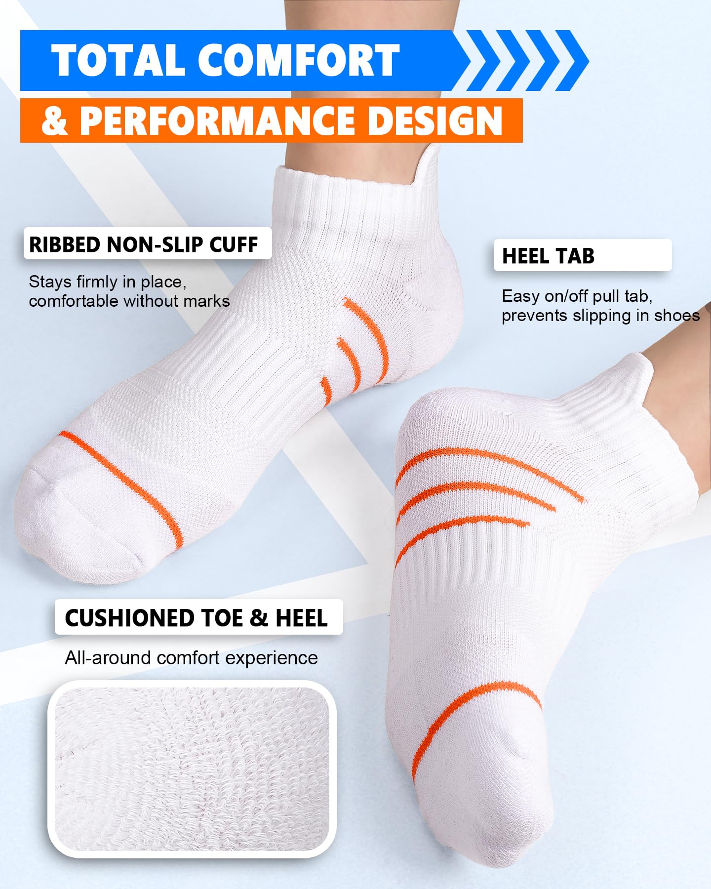 Targeted Arch & Ankle Compression Support-Engineered 8–15mmHg graduated compression supports arches and stabilizes ankles for better circulation, muscle balance, and all-day comfort. Perfect for plantar fasciitis support, post-workout recovery, and long travel — helping you stay active and strong every step of the way.