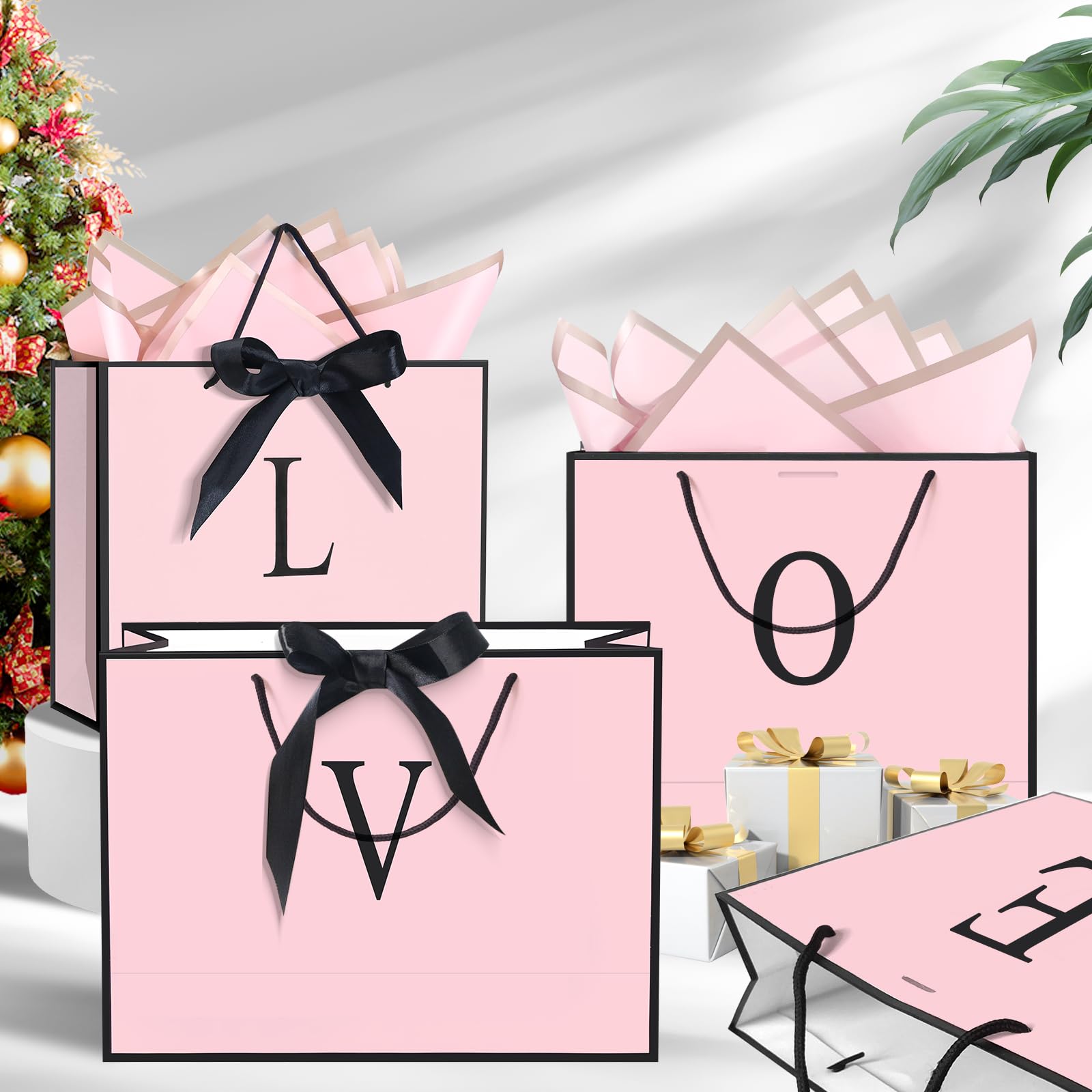 Size and package: Medium:12.6"x4.3"x10.5".Designed by QLSKO, this gift paper bag set is made of 250g of high-quality white cardboard. The set includes a gift paper bag with a handle, a bow ribbon, 2 sheets of high-quality waterproof wrapping paper, an envelope, and a greeting card.