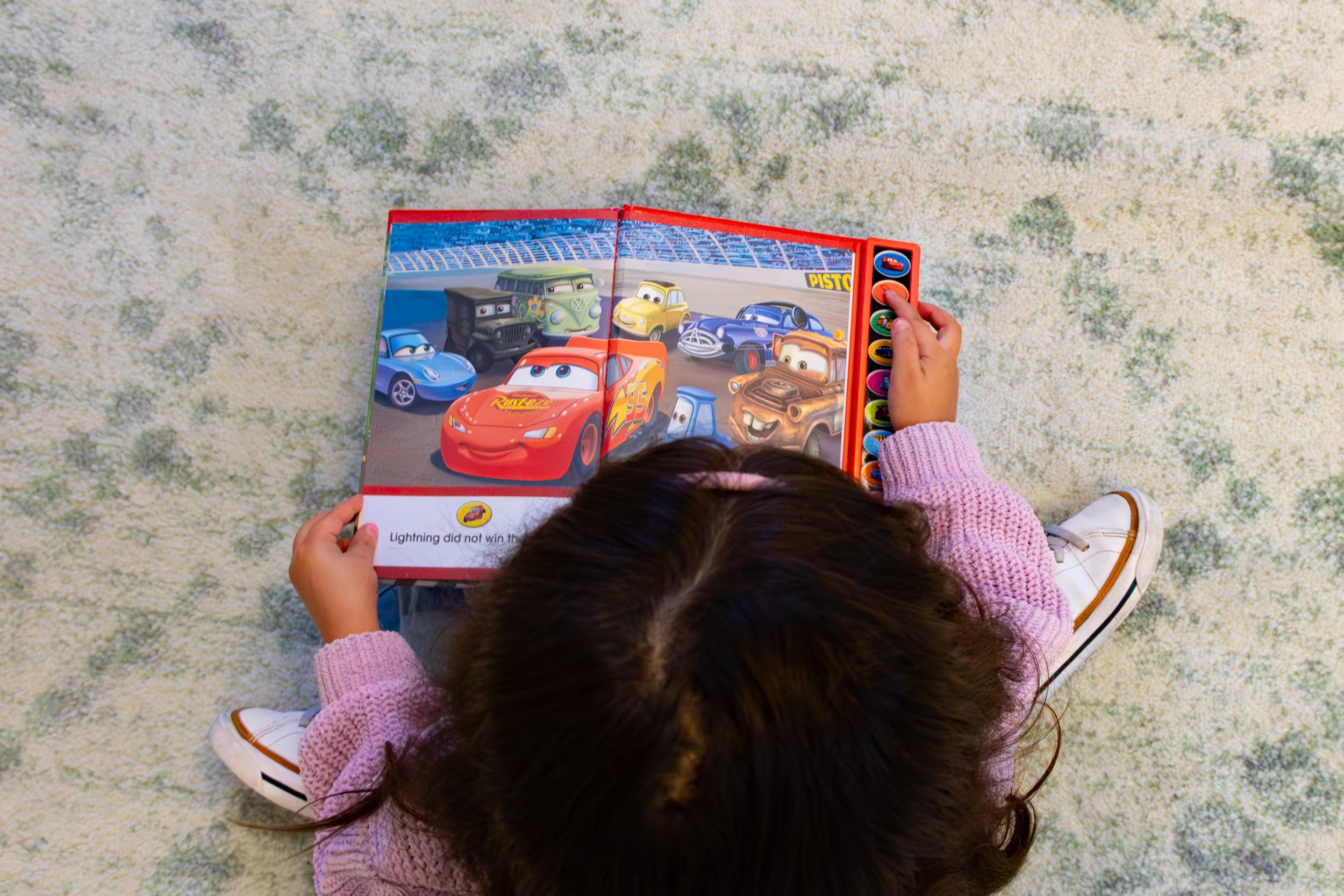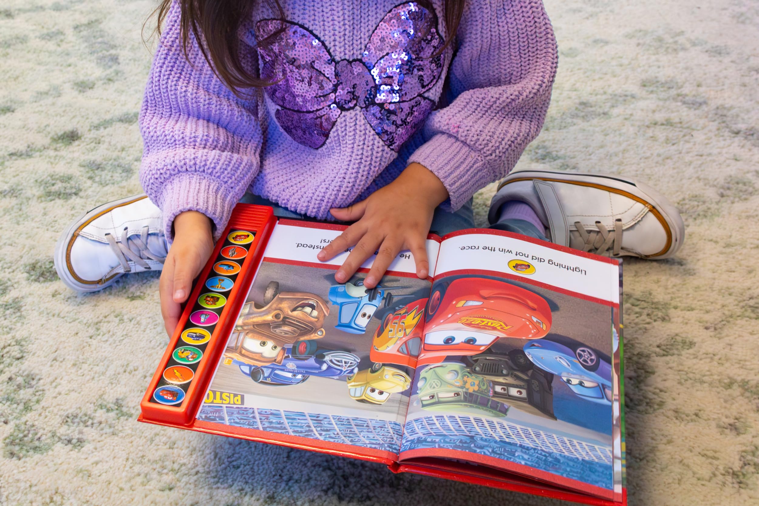 Read along as Lightning McQueen races to the finish line! Press 10 buttons to hear each page read out loud. Simple sentences, large type, and expressive narration make it easy for beginning readers to follow along!