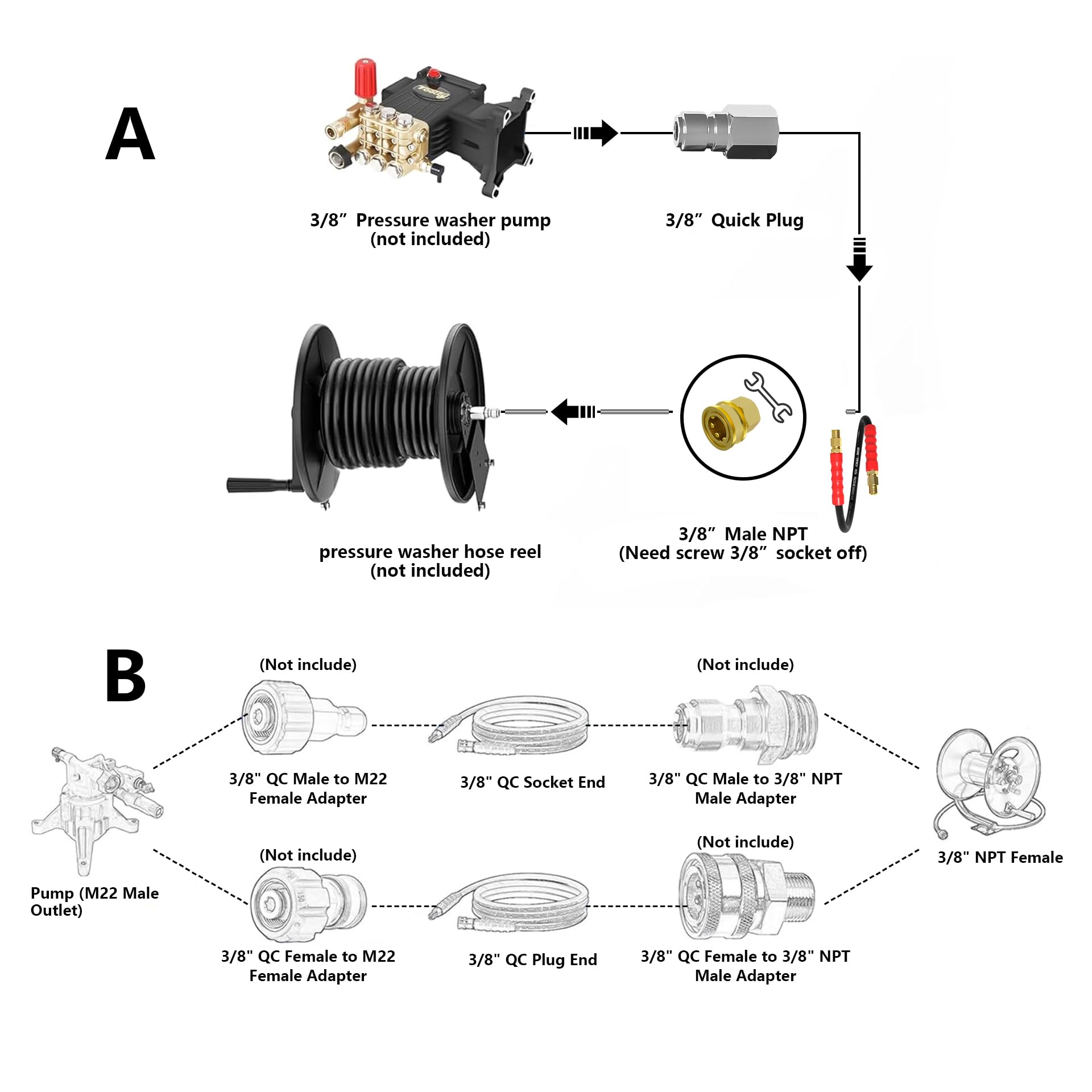 3.【Durable】- 5ft x 3/8" power washer jumper hose made of upgraded high tensile steel-wire braid, which is more durable and support higher working pressure and water flow. It's non marking, no leaking and never kink. Easy to carry, drag and roll up.