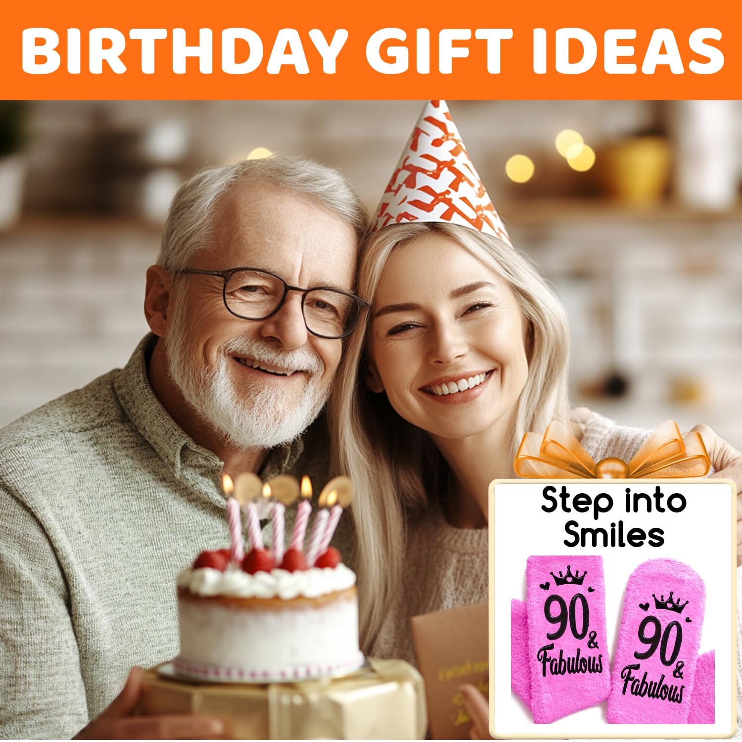 90TH BIRTHDAY GIFT IDEAS: Celebrate with our "90 & Fabulous" socks, an ideal gift for any occasion. Perfect for Birthdays, Christmas, or White Elephant exchanges, these socks add a fun and thoughtful touch to every celebration. Make each holiday unforgettable with this unique present.