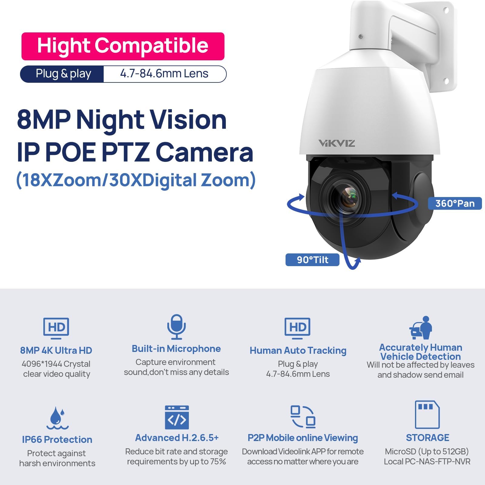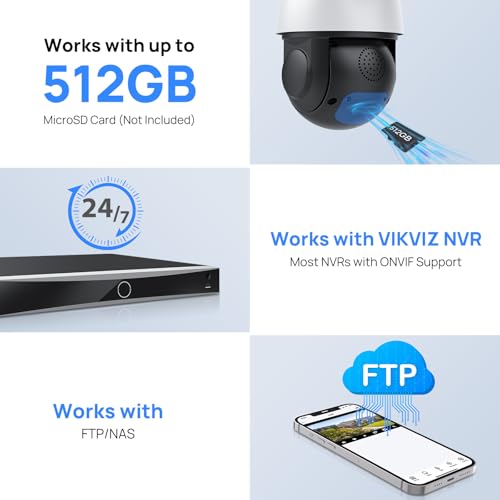 Easy to add your PTZ cameras to mobile phone via Videolink, not only enjoy real-time video, playback, take snapshots, receive motion alerts, but also share real-time video with family and friends; Built-in memory card slot supporting up to 512GB.(SD Card not including)