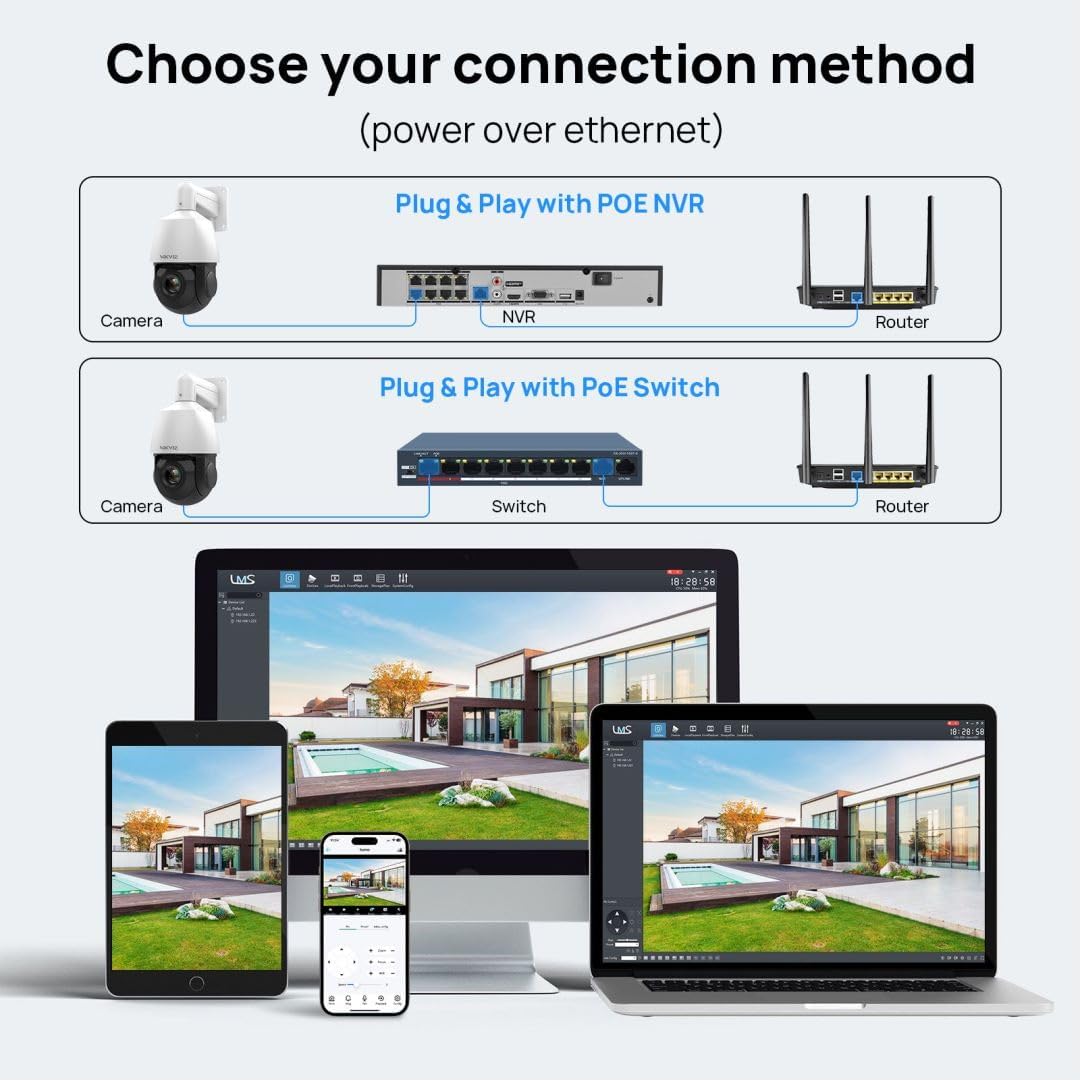 The 8mp dome camera can achieve 360°pan and 90°tilt full coverage of without any blind spots.Comes with 6 infrared LED lights can be captured clear images in low light or total darkness, poe cameras can extend the viewing distance to 328 feet.