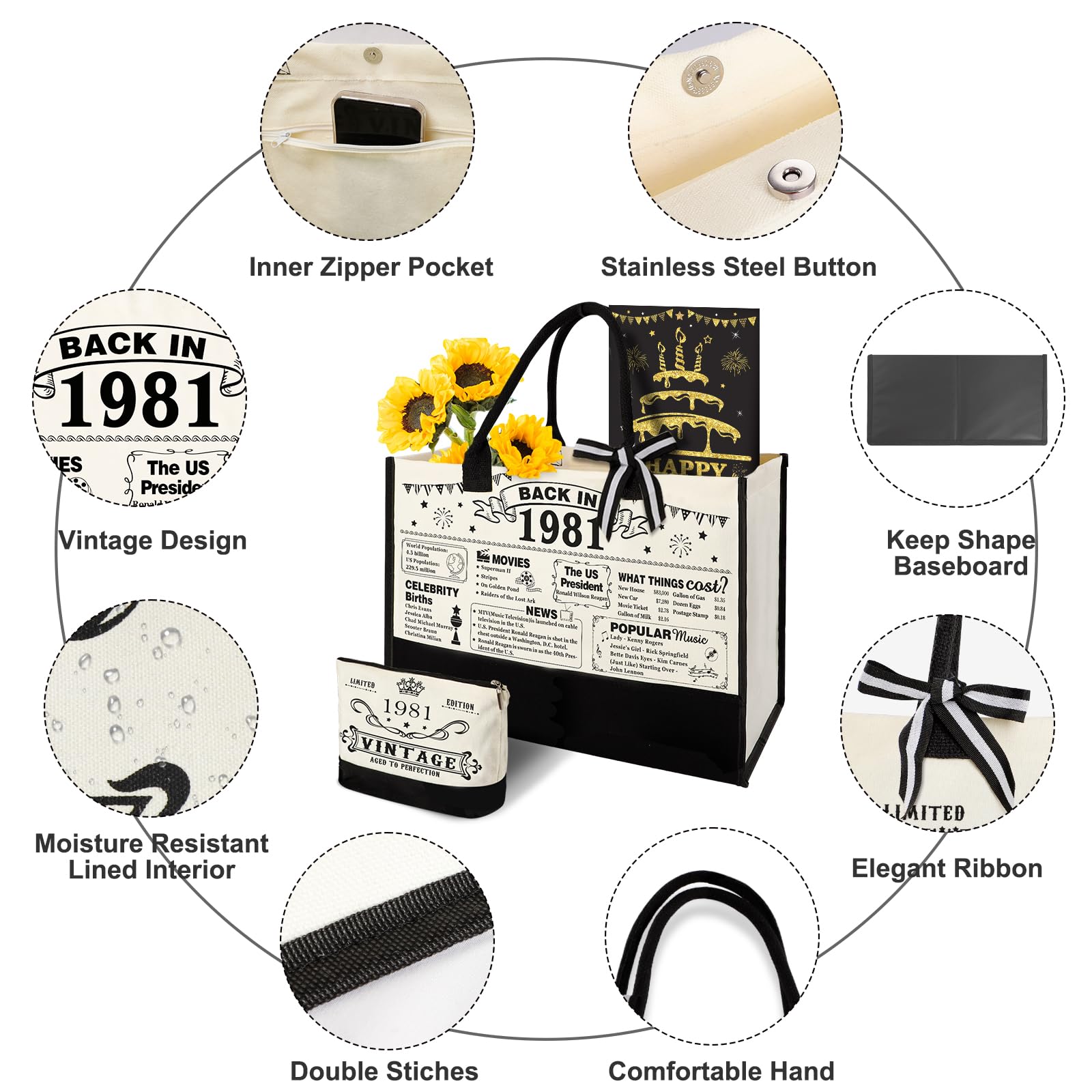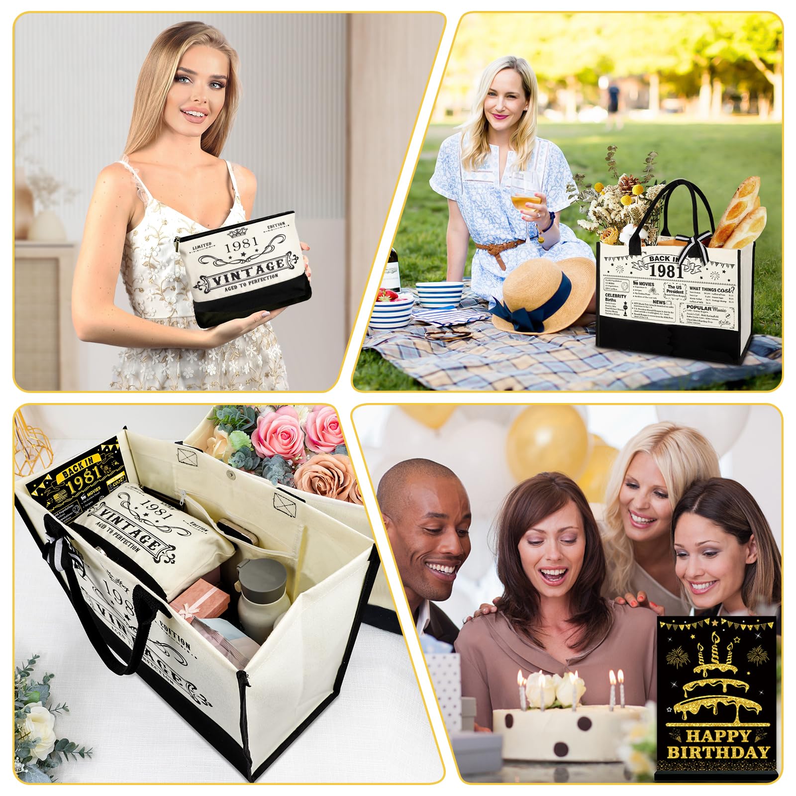 Great Gift for Her 45th Birthday: This gifts set for 45th birthday women contains: 1 X 1981 beach bag, 1 X cosmetic bag, 1 X back in 1981 poster, 1 X greeting card. Unique classy 45th birthday gifts will be a adorable gift for women's 45th birthday. This birthday 45 gifts themed idea makes the perfect choice for putting a smile on her face on their special day.