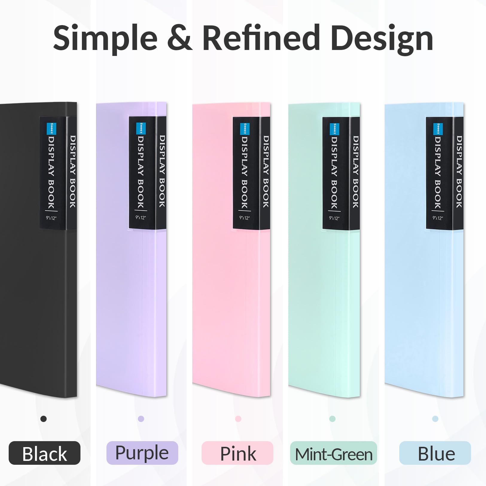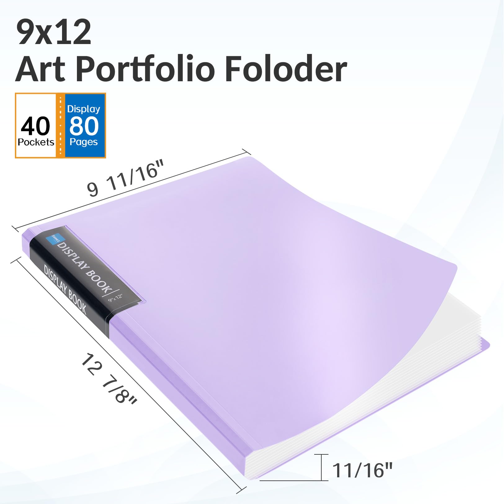 40-Pocket Large Capacity Portfolio Book: Each art binder with 40 bound (non-refillable) top-loading clear sheet protectors, letting you show 80 pages of 9x12" letter size or smaller. Folder measures 12 7/8" (L) x 9 11/16" (W) x 11/16" (G).