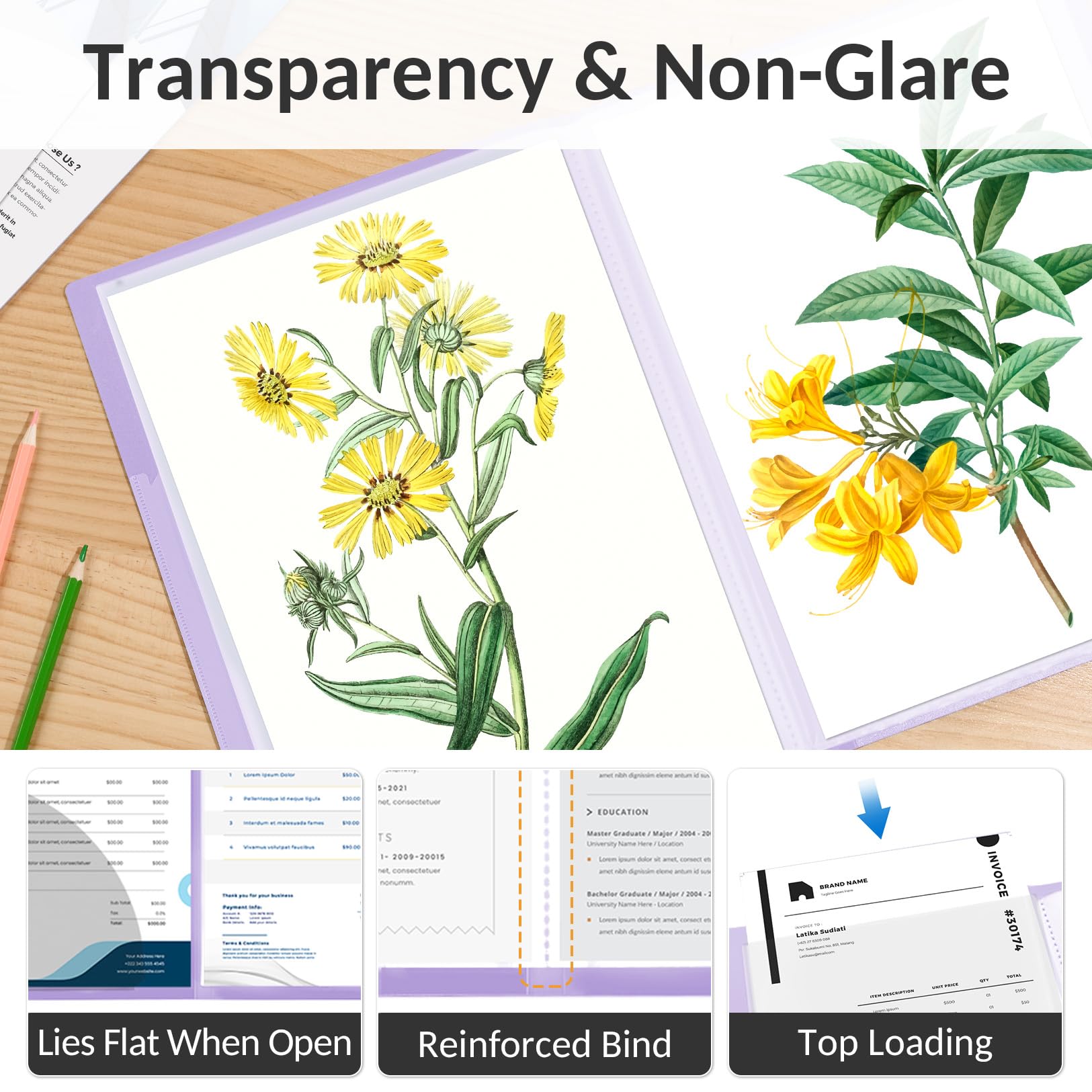 High Transparency & Lies Flat When Open: Our presentation book with crystal clear PP sheet protectors offers complete transparency for checking through and organizing. Bound sheet protector lies flat when open, free your hands.