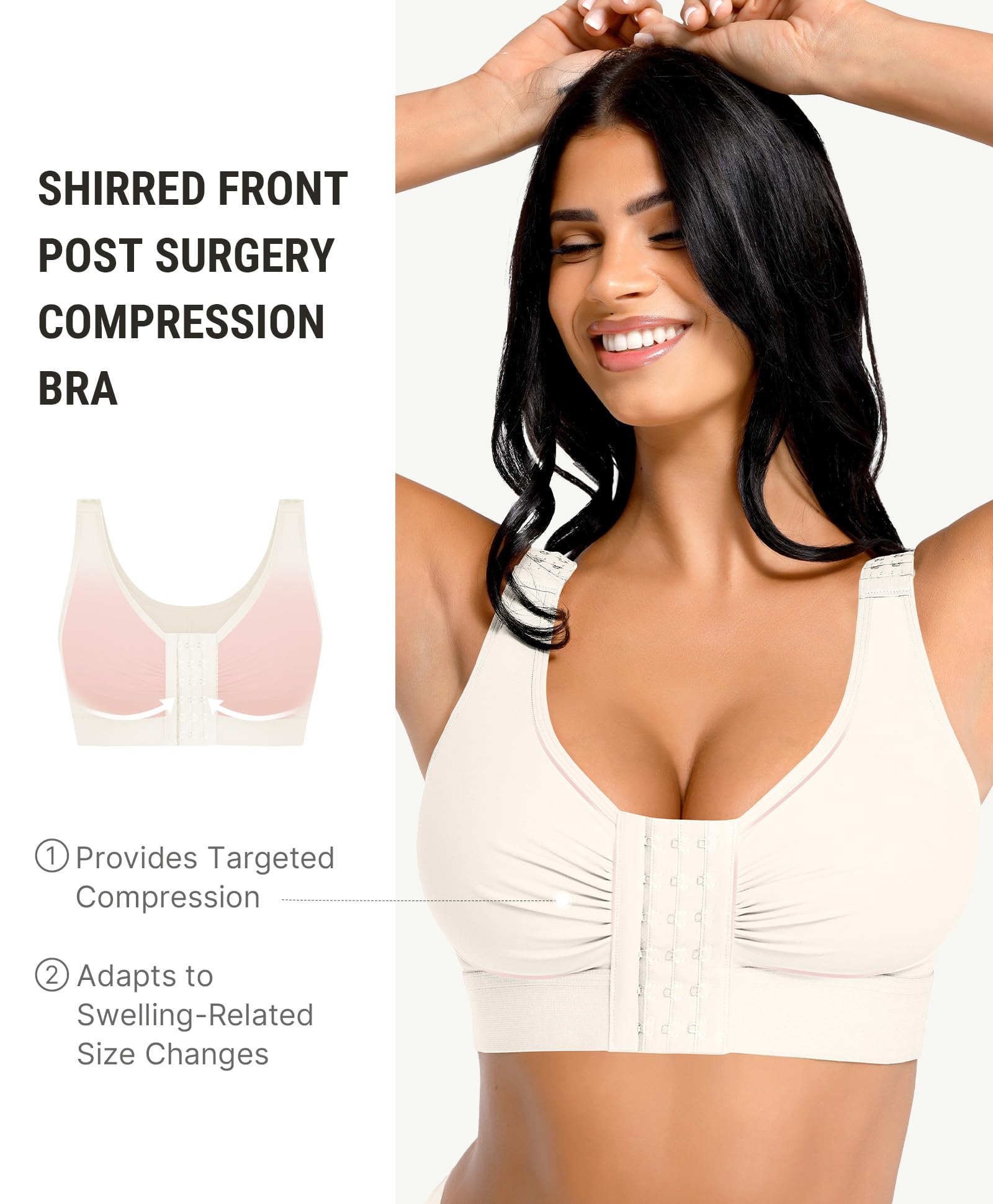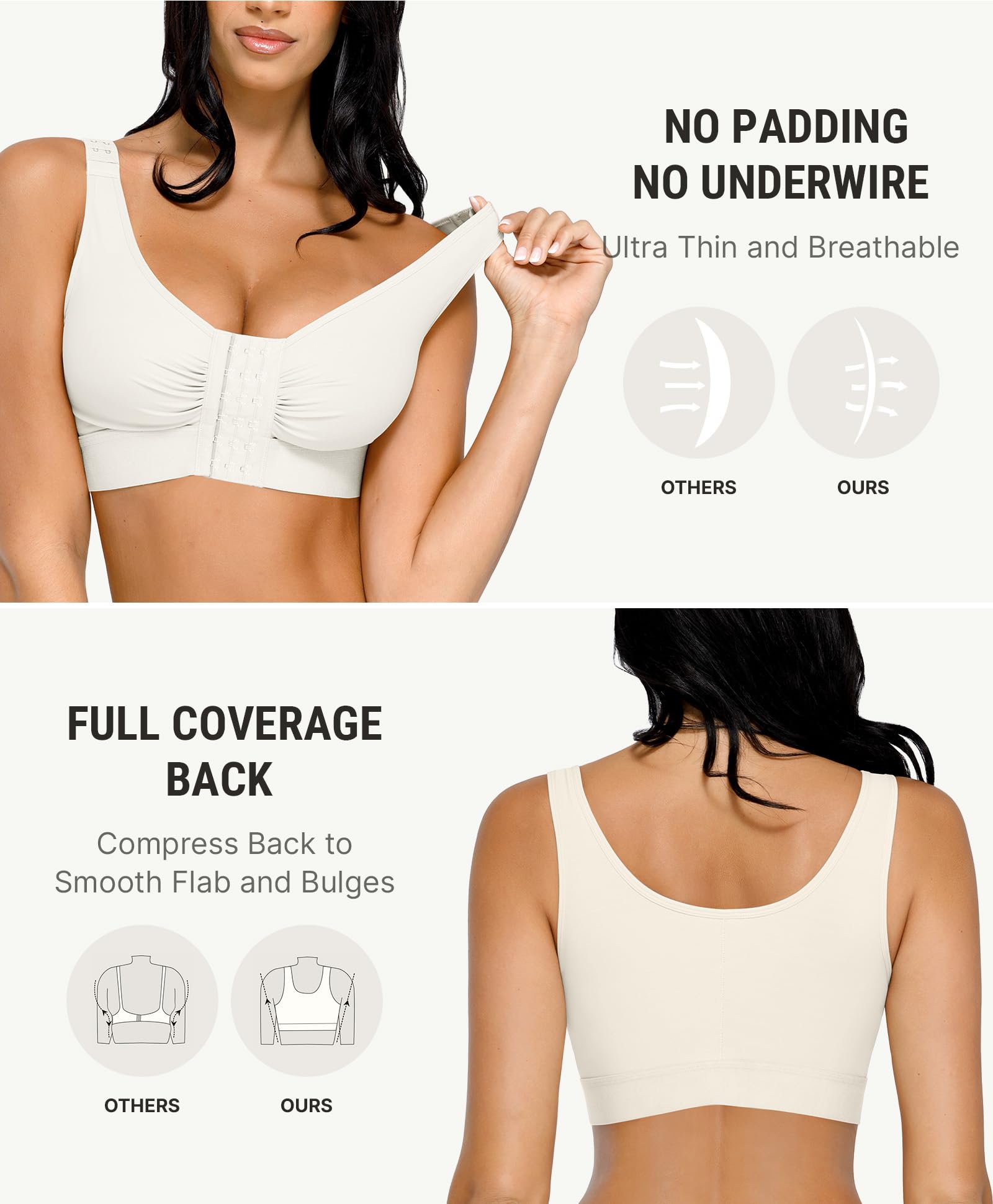 EFFECTIVE BREAST SUPPORT: The push-up bra posture shapewear tops for women effectively bring the breasts together to prevent sagging. This post-surgical liposuction compression mastectomy bra provides excellent full-coverage soft compression support for faster swelling recovery after breast lift, breast reduction, breast augmentation, and breast implant surgeries.