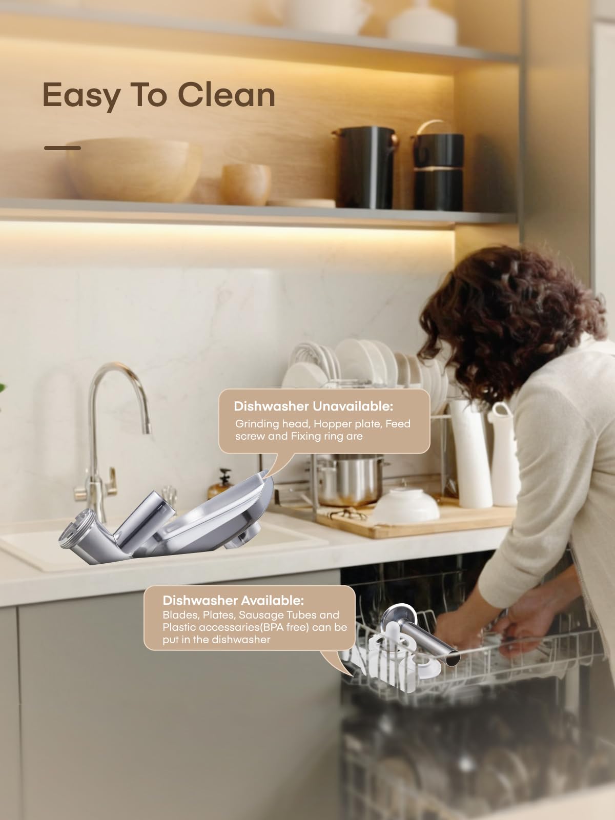 【Important Note】:Do not grind beans (dried or cooked, e.g., coffee beans, chickpeas, black beans, kidney beans, soybeans) in the meat grinder. It may damage blades, overload the motor, or cause clogging. Use a dedicated grinder or blender for beans.