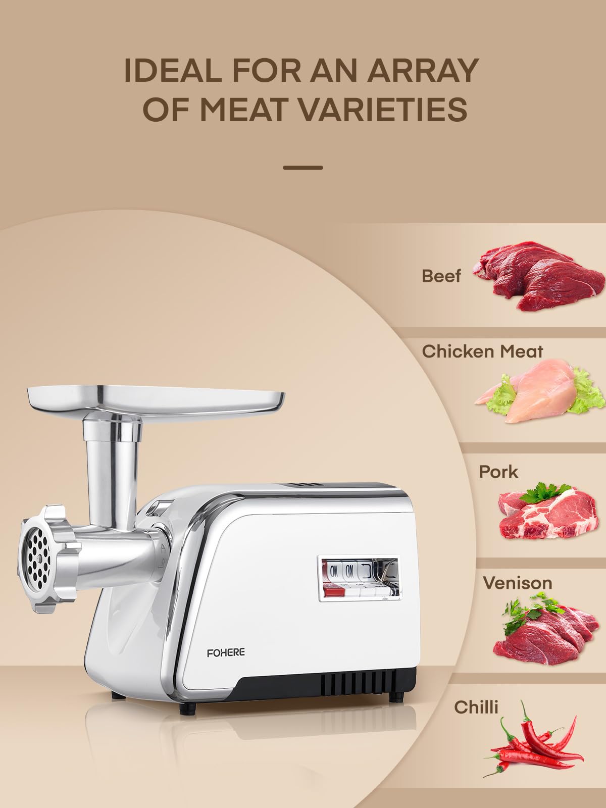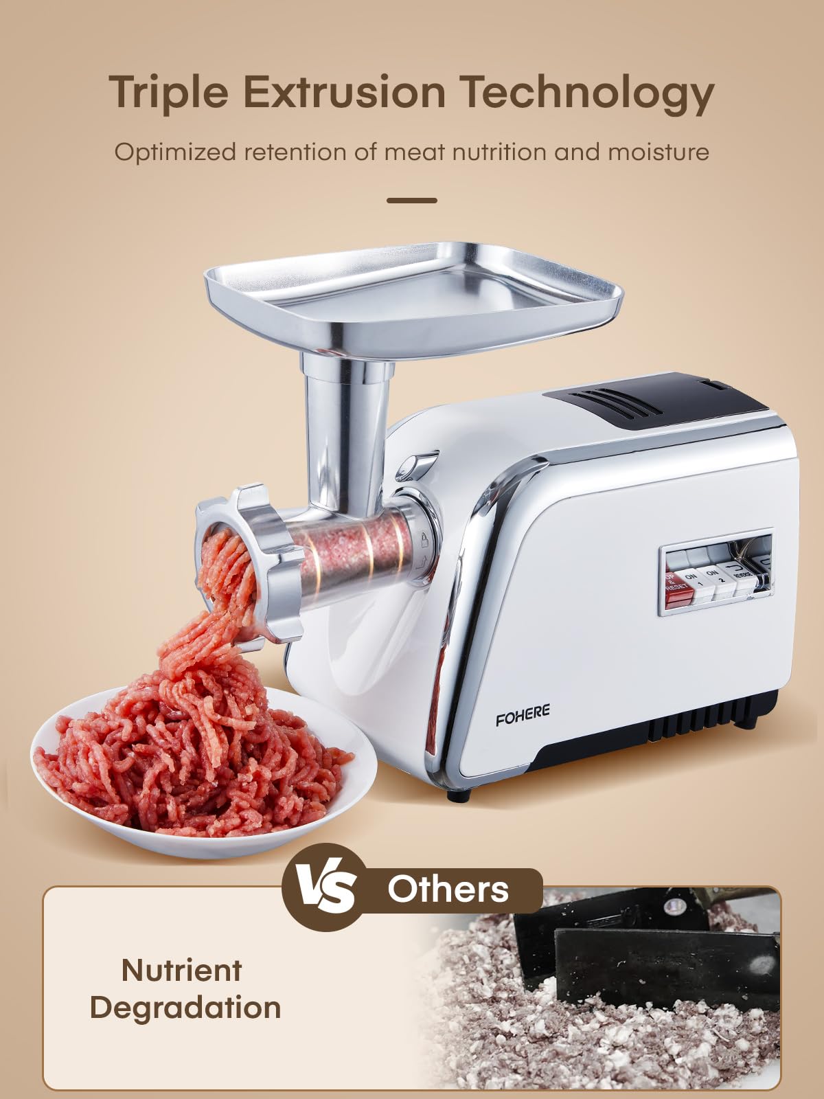 【Advanced Triple Extrusion Technology】 Maximizes the retention of meat nutrition and moisture. Perfect for processing deer, beef, pork, chicken, venison, duck, etc. [Note:] Not recommended for processing large bones or tendons with skin and fat.