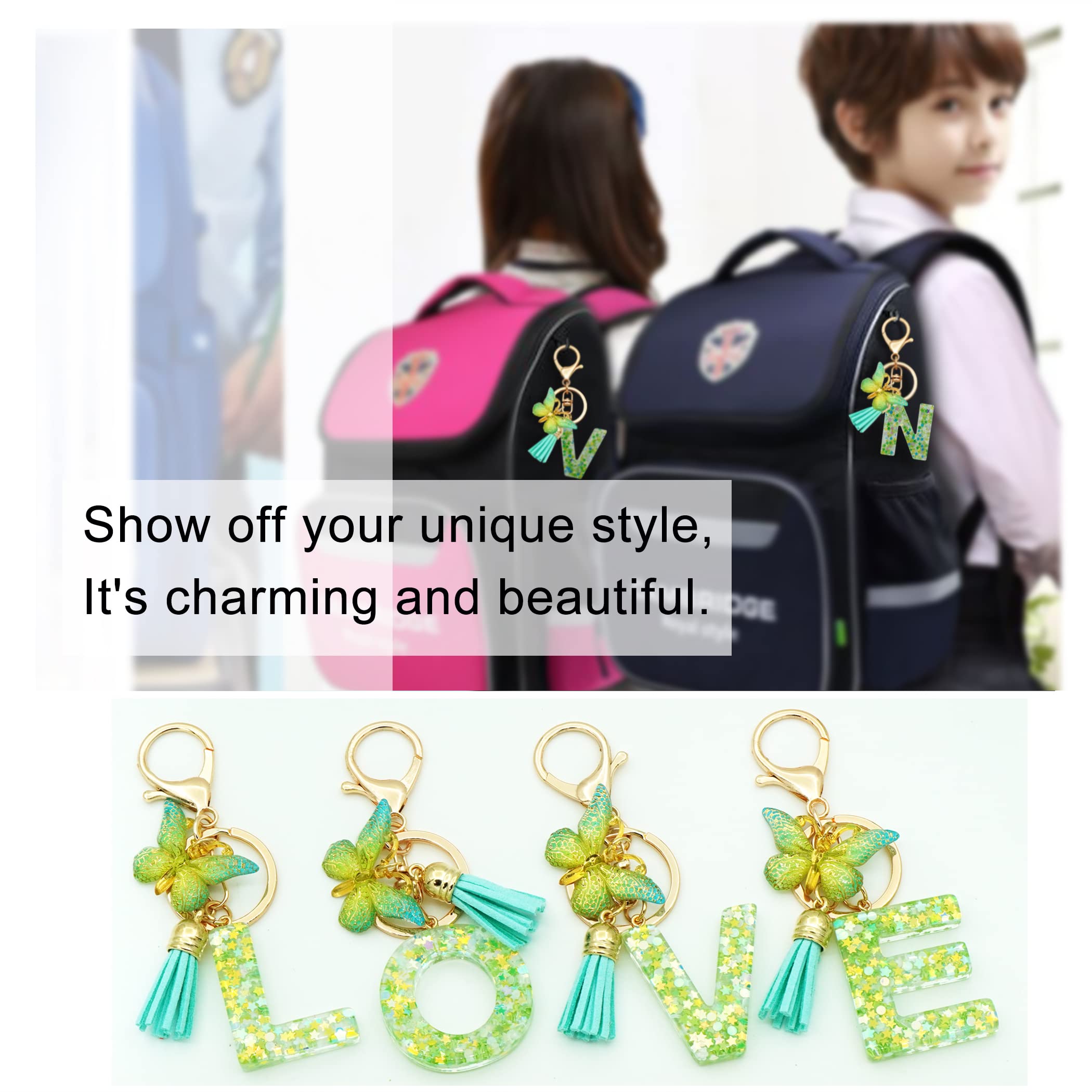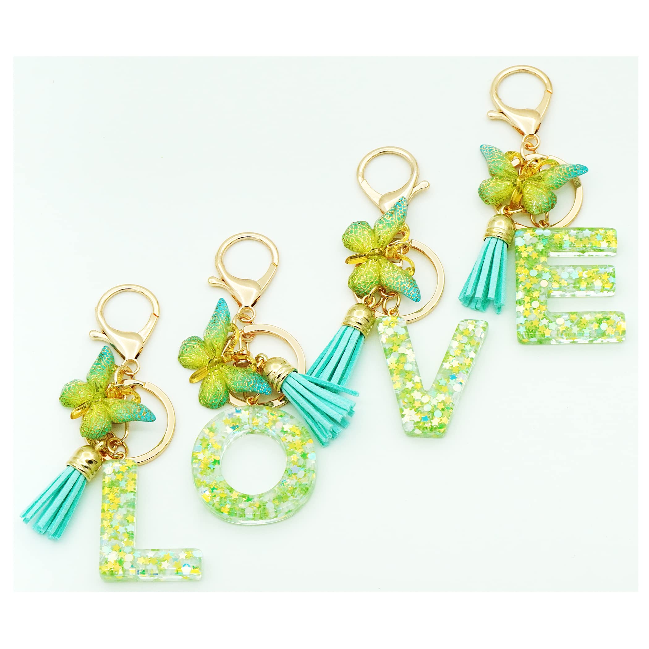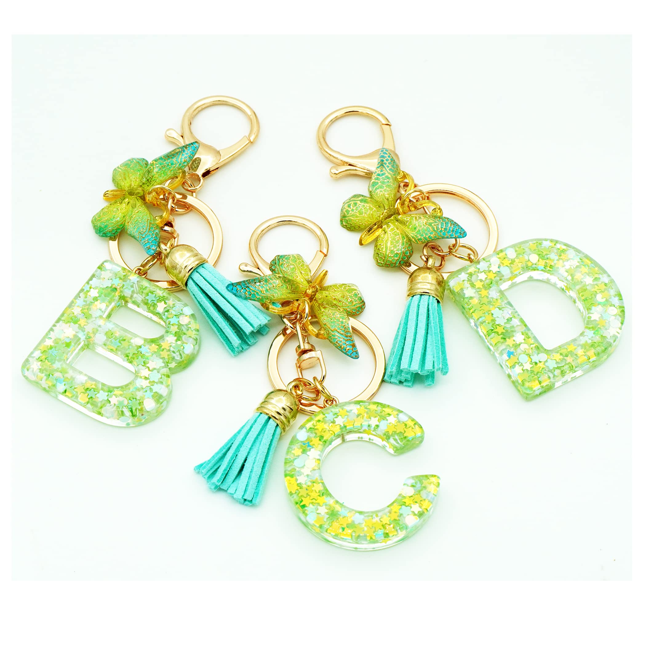 Initial Letter Keychains: This resin letter keychain is made of high quality epoxy resin material,come with a resin butterfly and Tassel,It goes well with your backpack and is very personalized.