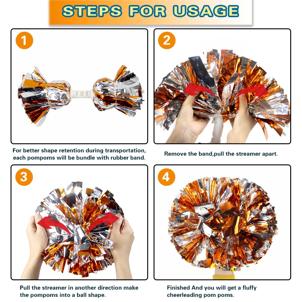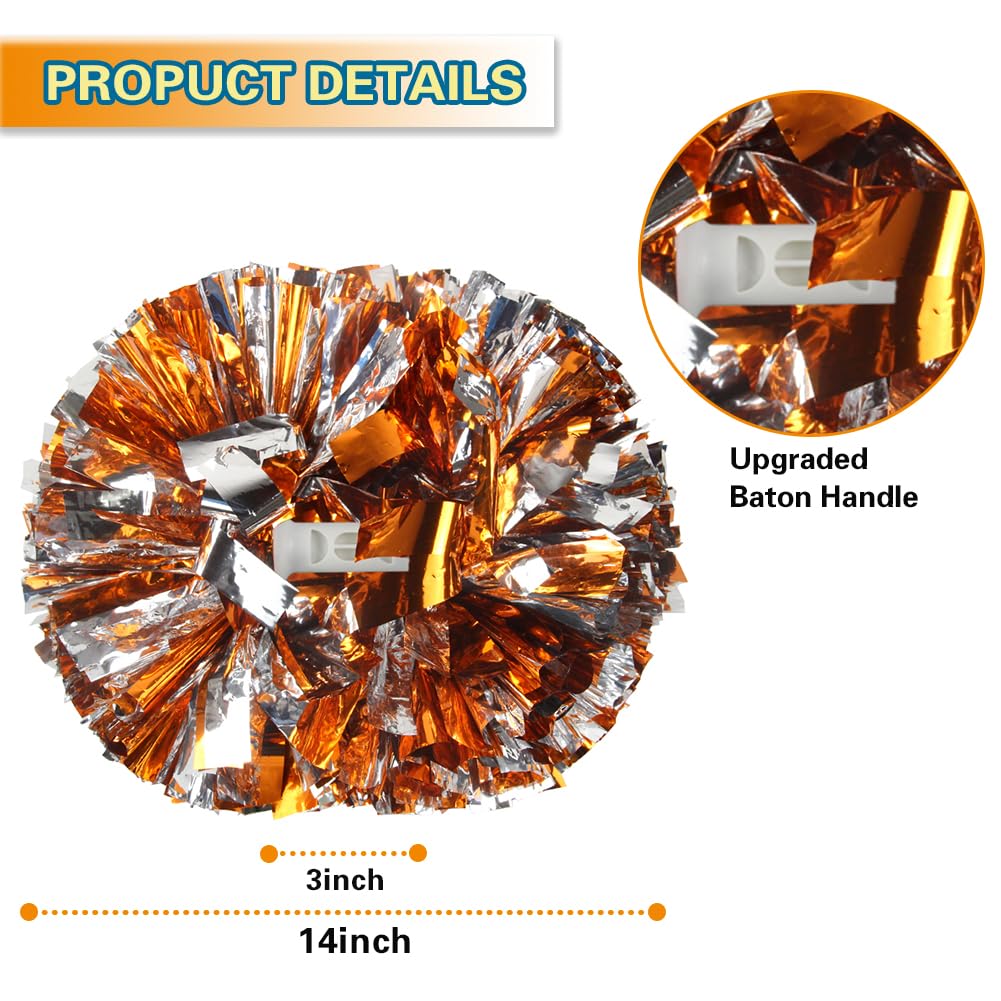 14inch Poms: The double-headed cheering pom poms with a total length of approximately 14 inches, the handle approx 3 inches, fit for most people
