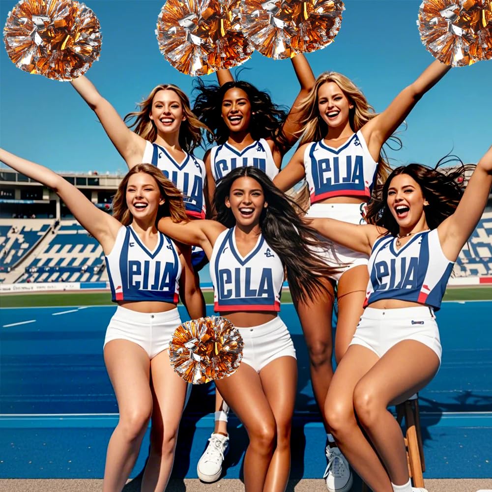 Sturdy Handle: Thickened plastic baton handle in the middle of pom poms, it will not break easily; The trumpet-shaped baton design at both ends makes pompoms fluffy, and the ribbons are fixed stronger; Has also performed well in long-term cheerleading training