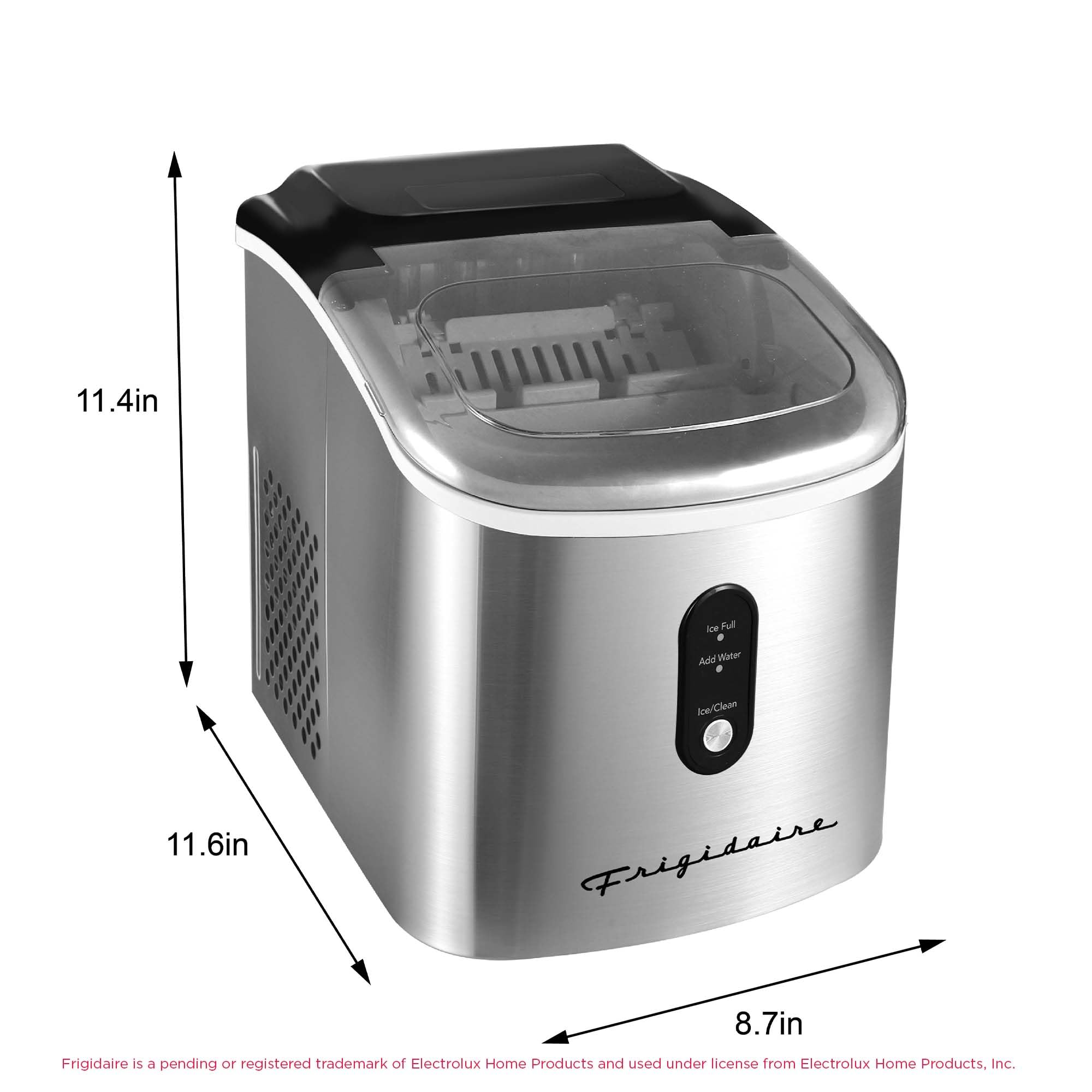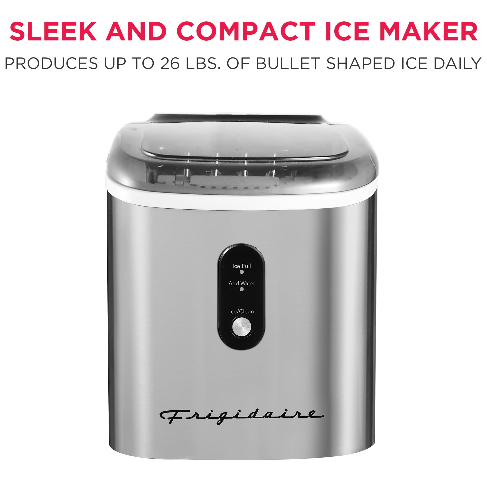 LARGE CAPACITY - Featuring a 1.2-quart water reservoir conveniently located under the ice basket, this countertop ice maker produces up to 26 lbs. of clear ice cubes daily, delivering 54-75 ice cubes per hour.