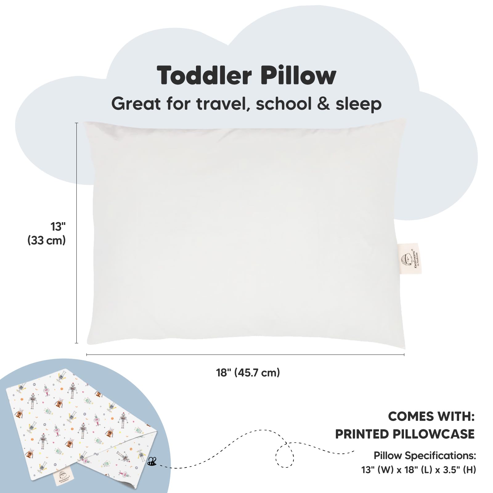 13"x18" Ergonomically Designed Toddler Pillow with Pillowcase - Highly rated by parents around the world, KeaBabies My Little Dreamy Pillow, is designed to provide toddlers, kids with comfortable spinal support for sleep and travel.
