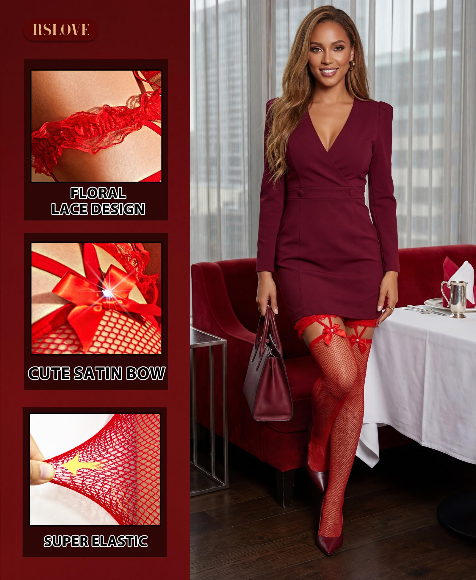 Material: Fishnet stockings made of high-quality nylon material, looks sexy and noble, elastic fit and comfortably hug the legs.