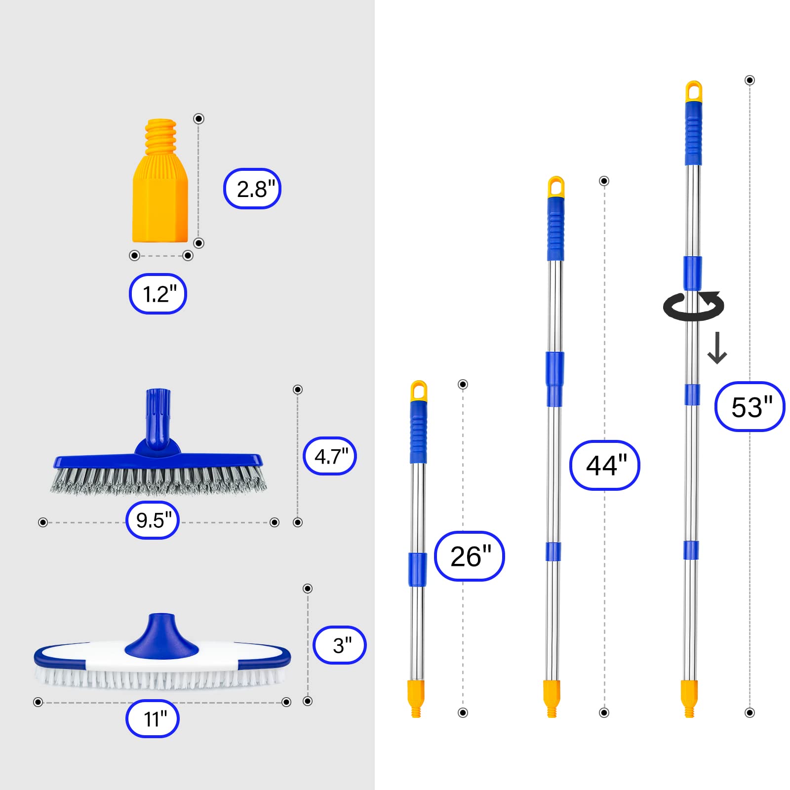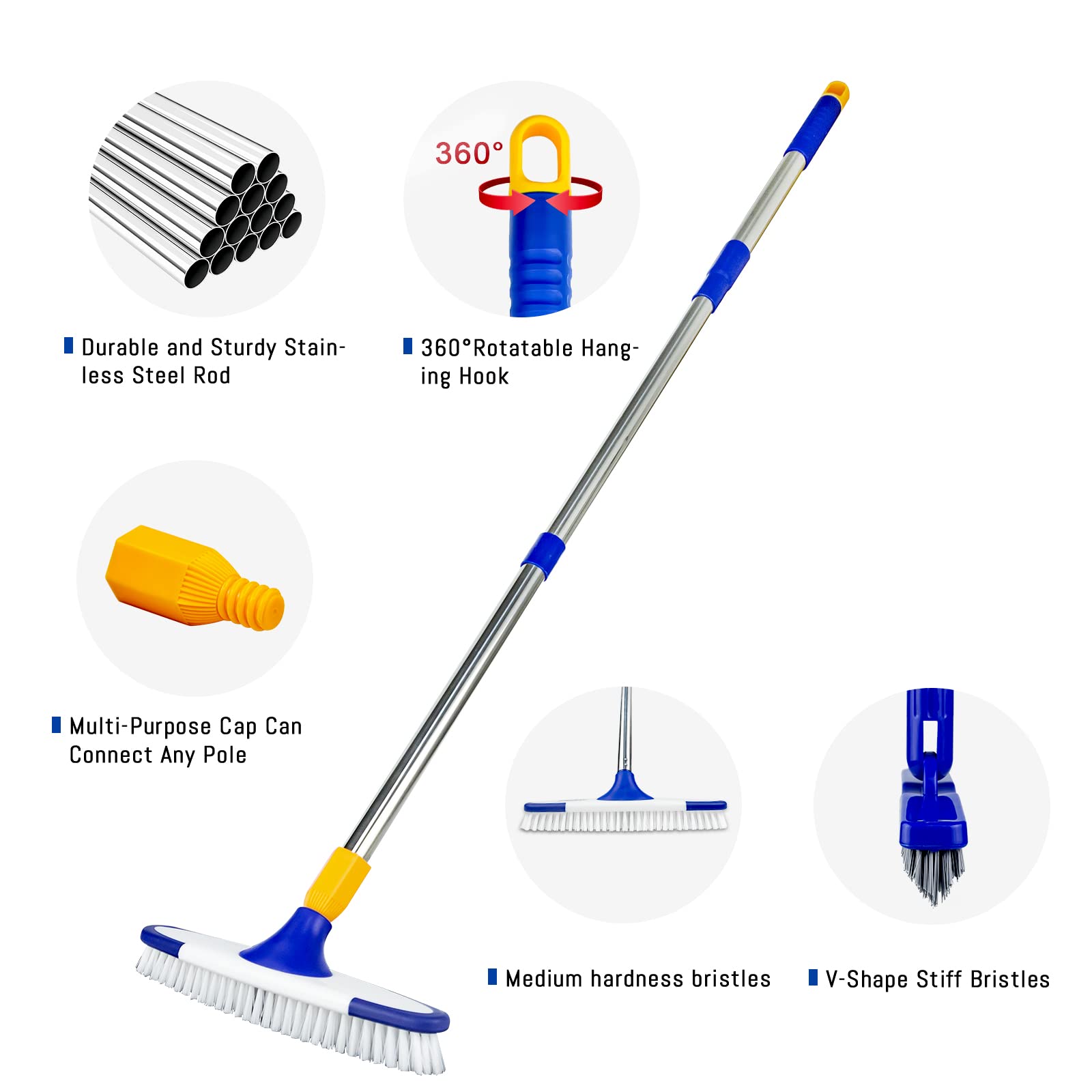 What You Get: 1 V-shape grout brush head, 1x scrub brush head, 3 x stainless steel poles. Please feel free to contact us if you have any issue, we will reply you within 24 hours