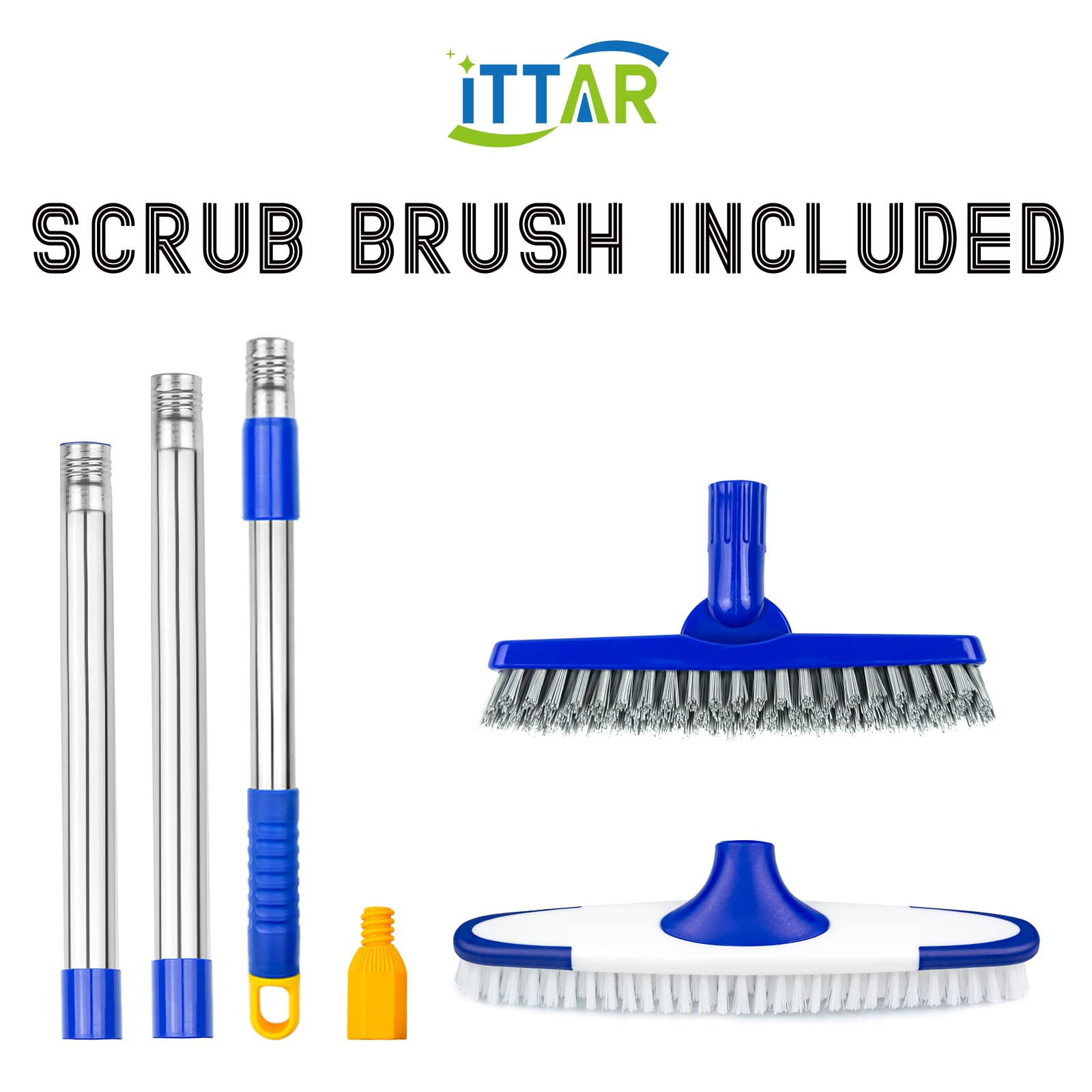 Versatile Scrub Brush Set : ITTAR brushes set comes with 2 brush heads, floor scrubber brush and V-shape grout brush. The scrubber brush set provide you different household cleaning tasks. The white brush head ideal for scrubbing bathroom floor, walk-in shower, tiles, kitchen. Stiff bristles V-shape design grout cleaner brush great for cleaning grout tile line, sink, corners, gaps and hard to reach areas