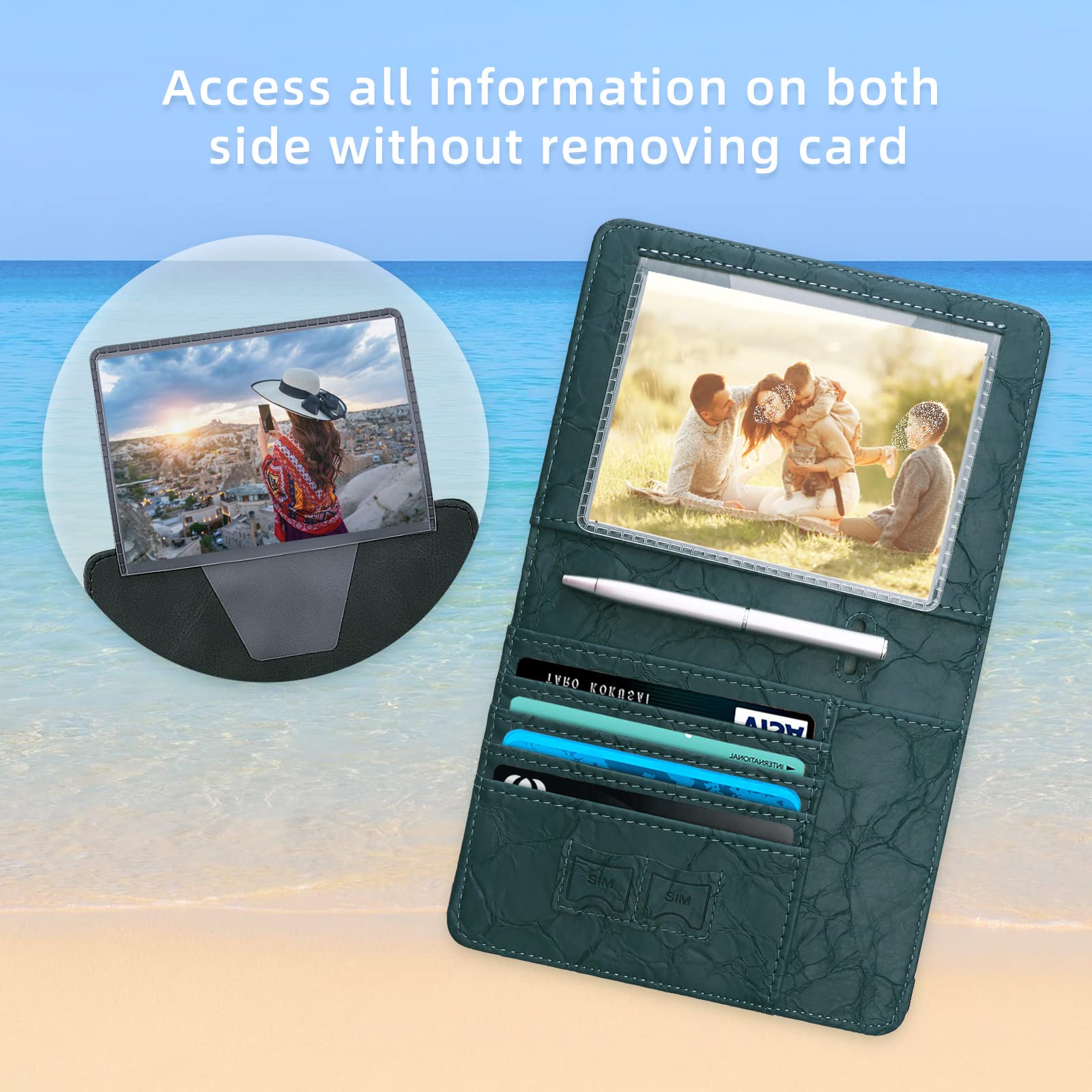 【MULTIPURPOSE SLOTS】This passport and vaccine card holder combo has large storage, which includes 1 transparent card slot, 2 passport slots, 4 cards slots for bank card, credit card, driver license and id card, 2 SIM card slots and 1 pen holder. Travel with our passport case makes you easy to access travel documents during boarding and transit.