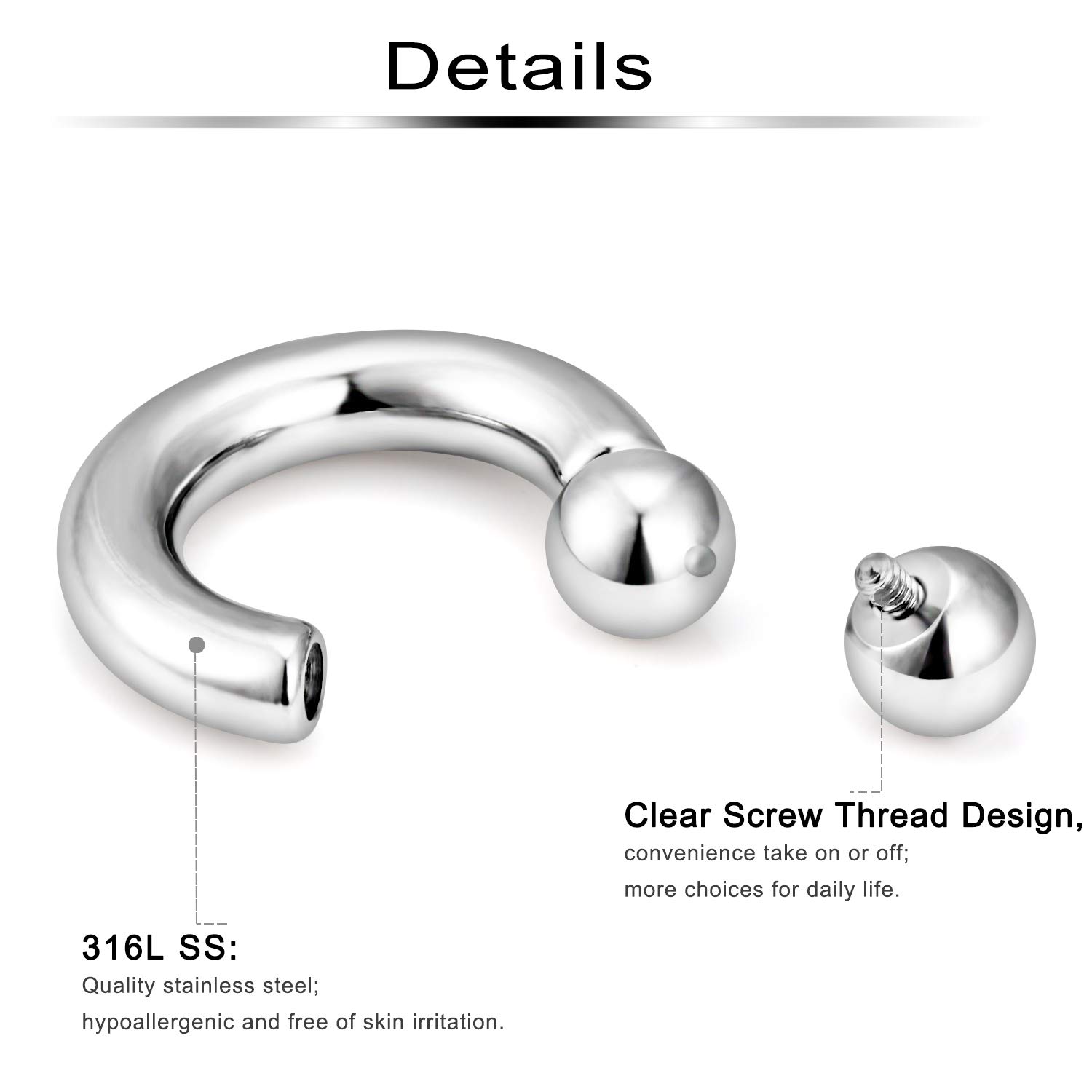 Material: These Circular Horseshoe Barbells Are Made of 316L Stainless Surgical Steel, Solid and Durable, Hypoallergenic; High Polished Surface, Very Smooth to Wear, Extremely Easy to Clean.