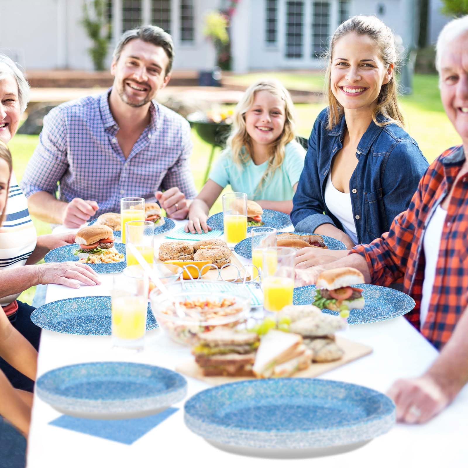 Upgraded Material: Blue party plates and napkins are made of high quality thick paper. Blue paper plates are upgraded to 350g, more sturdy and durable; napkins are thickened to 3 ply, softer and more absorbent; forks are not easy to break; printing is beautiful and not easy to fade. Premium materials ensure you enjoy the party smoothly and worry-free! (Tip: please do not microwave the plates)